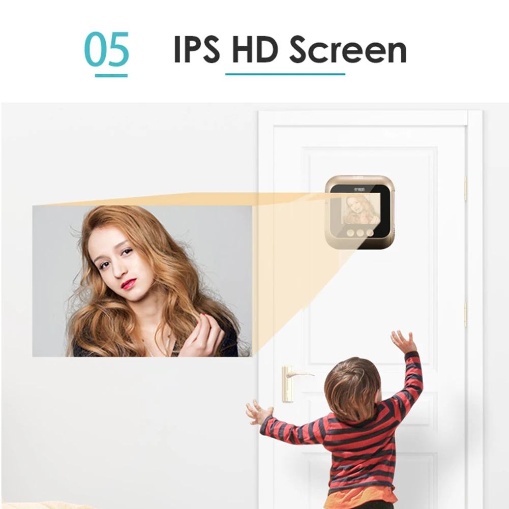 Многофункциональный цифровой дверной звонок с ЖК-дисплеем 2,4 дюйма, электронный дверной глазок, беспроводная Классическая кольцевая камера с поддержкой видео