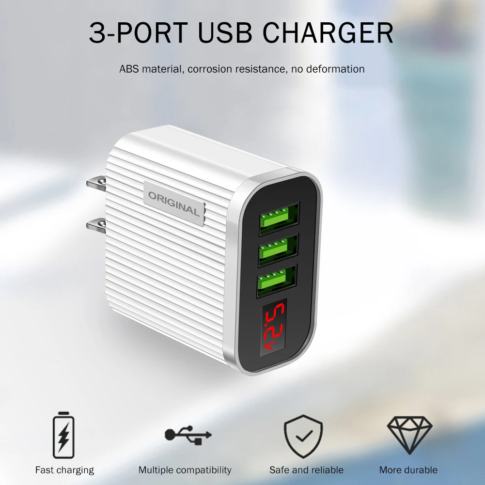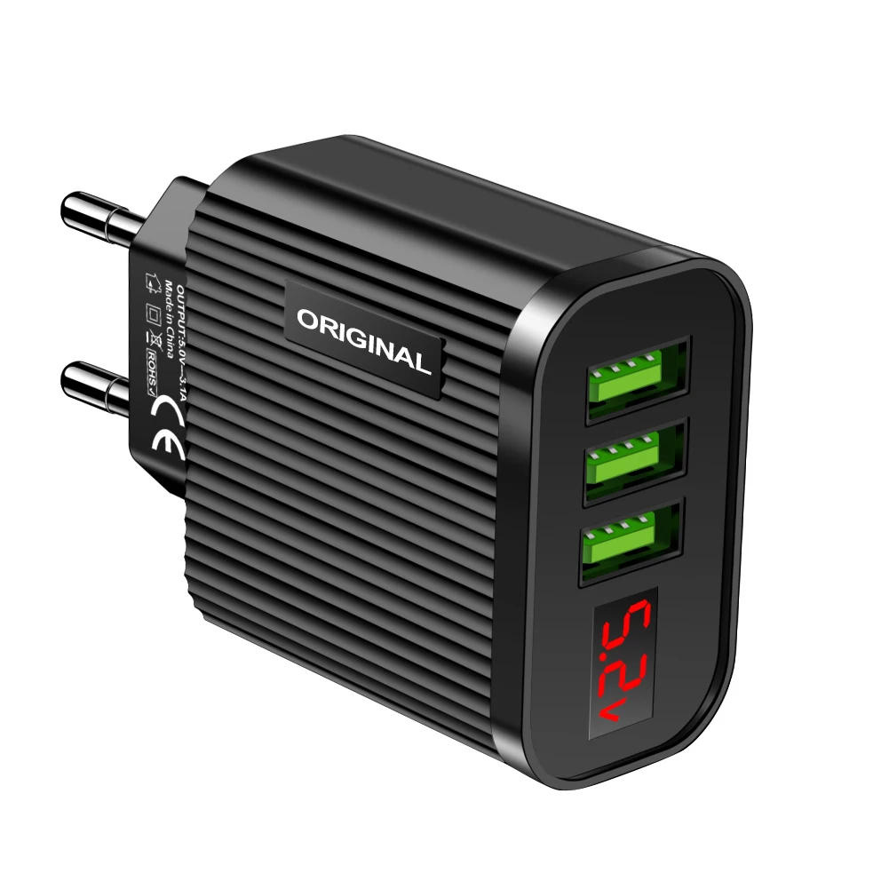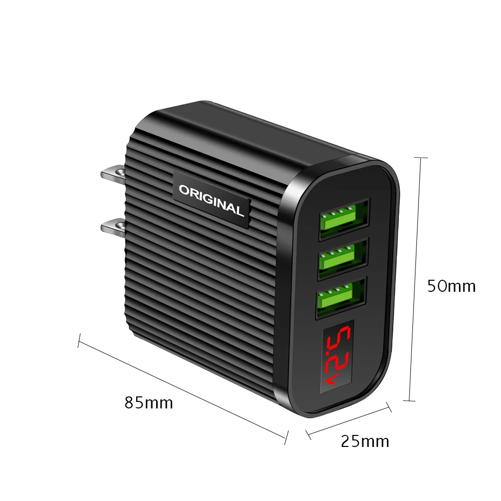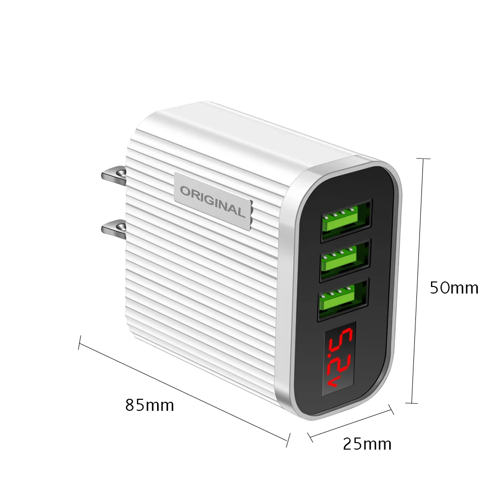 Зарядное устройство USB с цифровым дисплеем 5 в 3 А для iPhone, iPad, Android, телефонов, планшетов, 3 USB