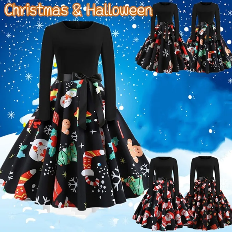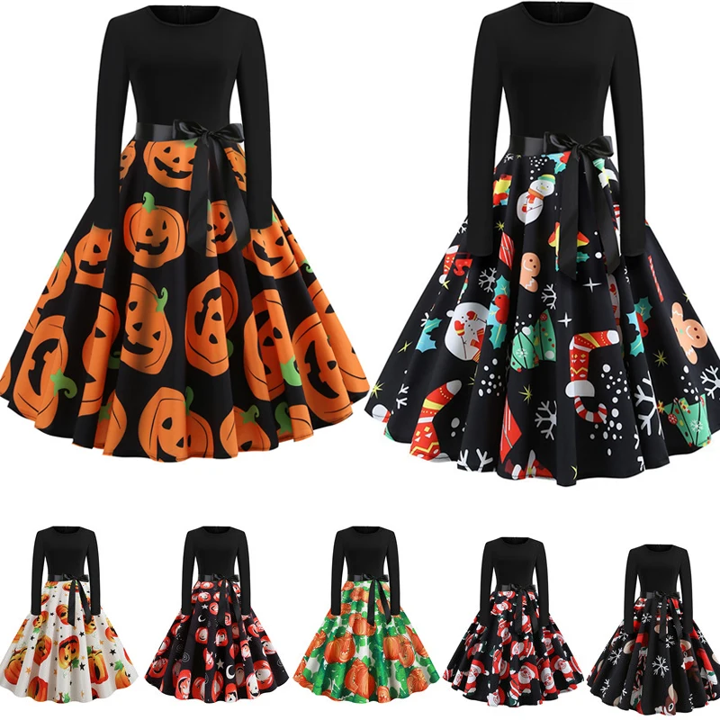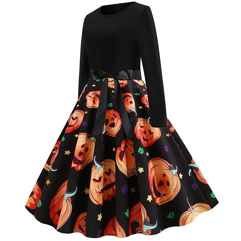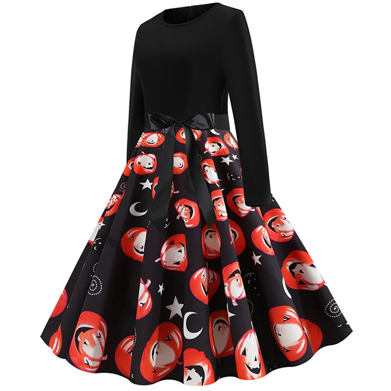 Женское платье средней длины с длинным рукавом, винтажное платье принцессы в стиле 50-60-х годов, для Хэллоуина и Рождества
