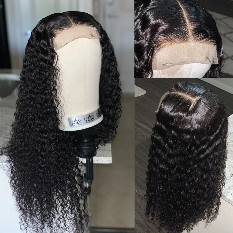 Парики из человеческих волос с глубокой волной, парик на сетке 4 4 для чернокожих женщин, плотный длинный кудрявый парик с неповрежденными волосами