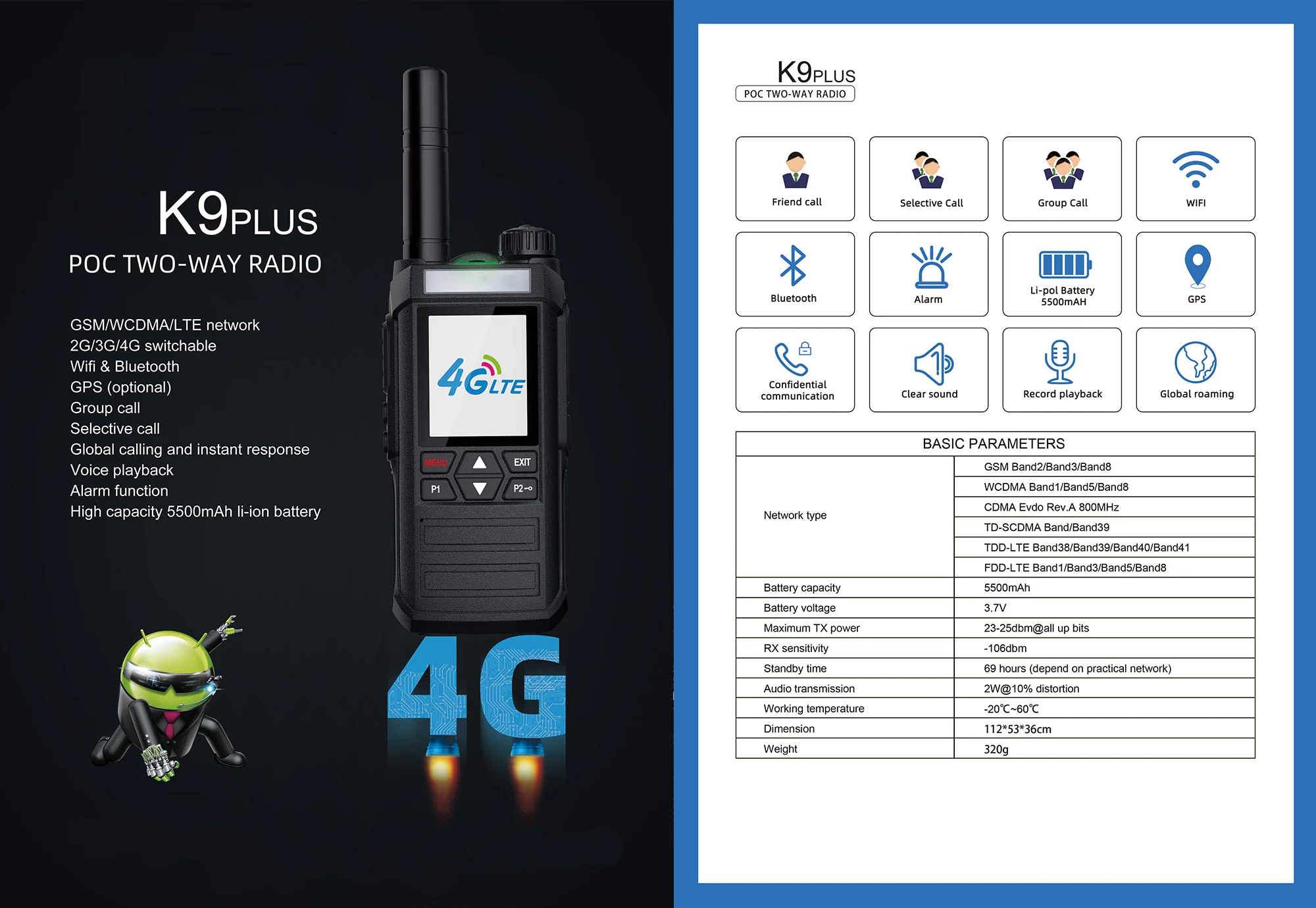 4g Sim Walkie Talkie Wifi + Bluetooth GPS Zello Radio