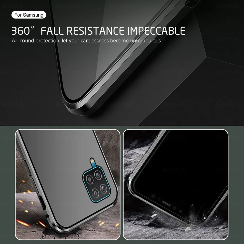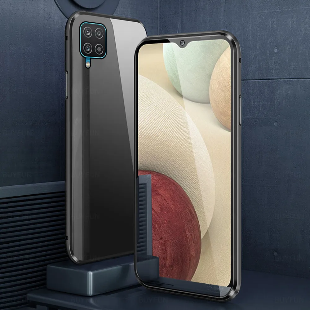 360 полная защита Магнитный двухсторонний стеклянный чехол для Samsung Galaxy A12 12A 12 12 A 1 2 A металлическая рамка закаленное стекло крышка