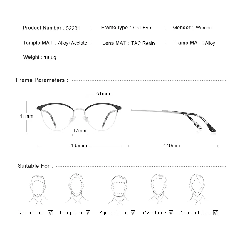 Женские очки для коррекции близорукости merry's, дизайнерские очки в стиле ретро оправа для очков в стиле кошачьи глаза, полуоправа, оптические очки по рецепту, S2231