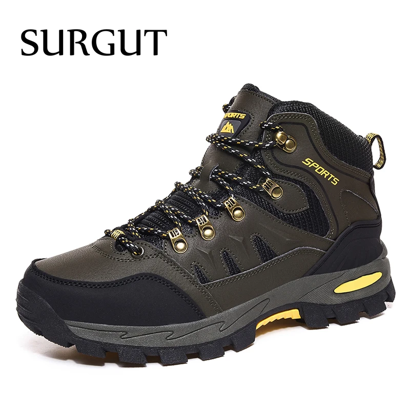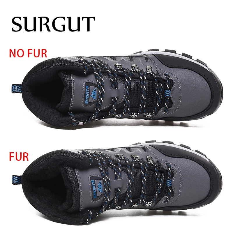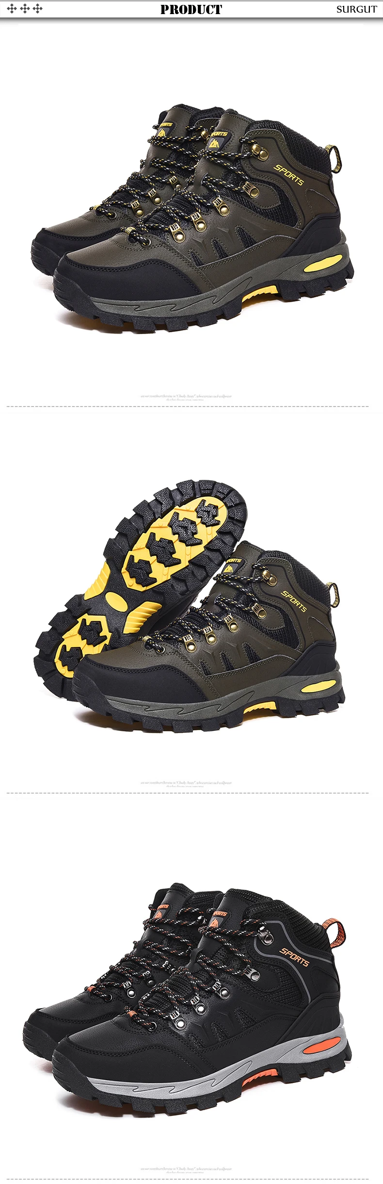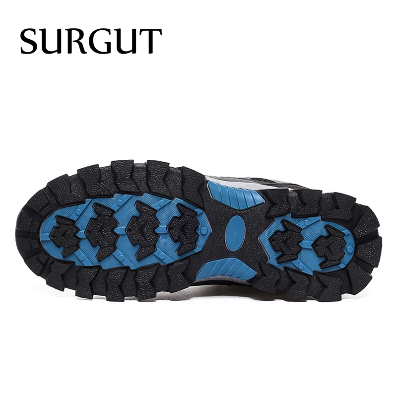 Мужские уличные ботинки на шнуровке SURGUT, Черные Теплые ботильоны, водонепроницаемая Нескользящая рабочая обувь для снега, зима 2019