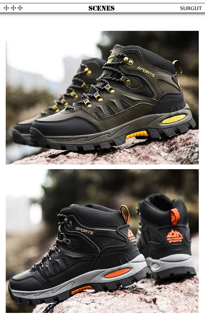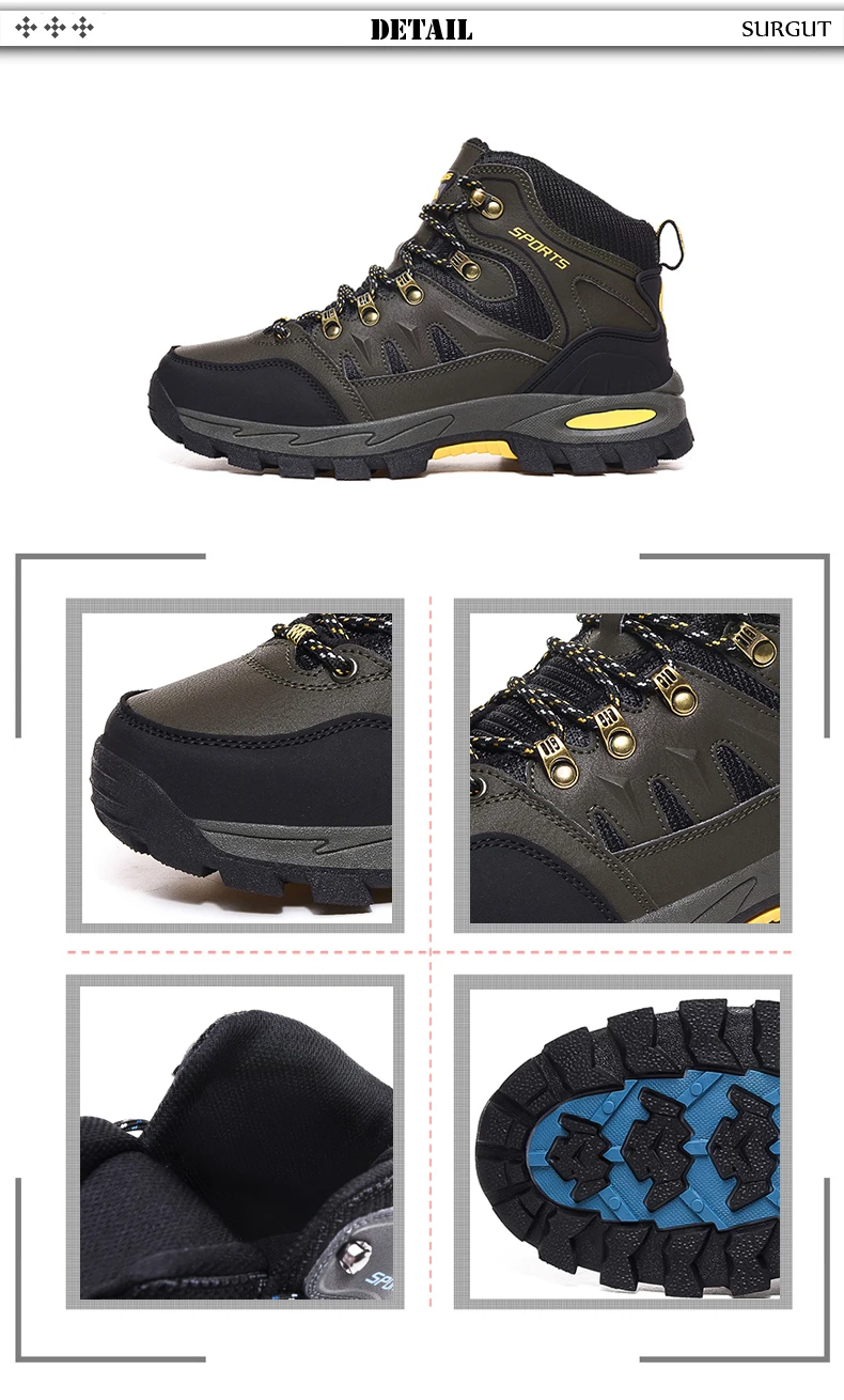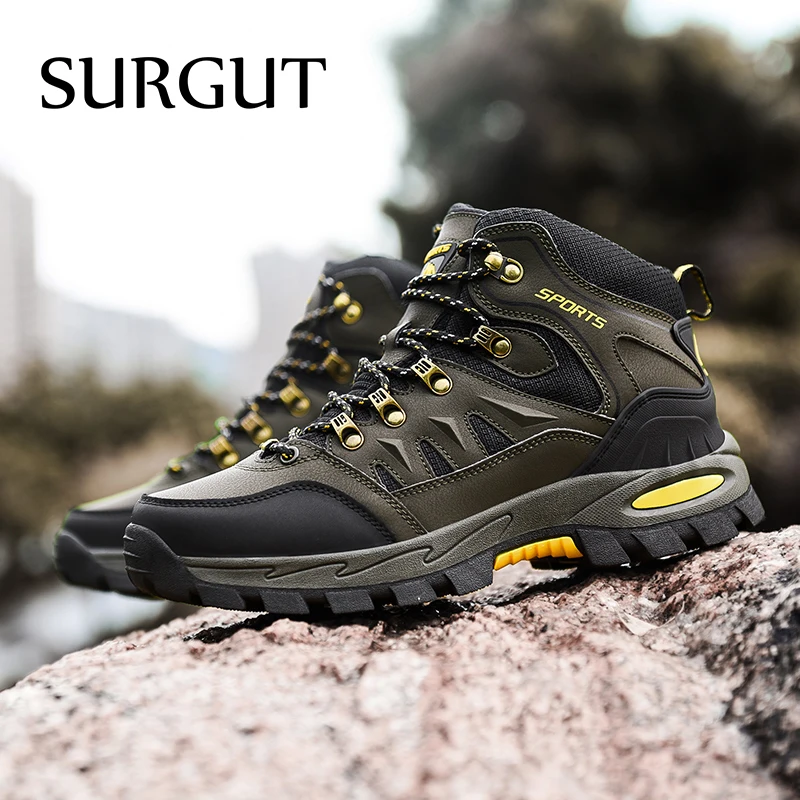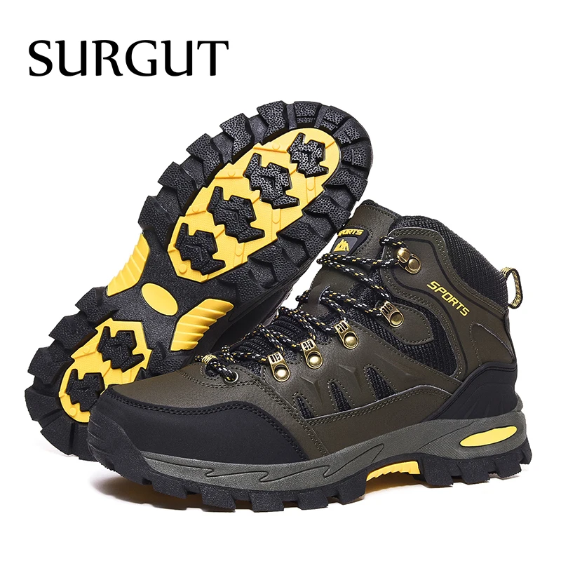 Мужские уличные ботинки на шнуровке SURGUT, Черные Теплые ботильоны, водонепроницаемая Нескользящая рабочая обувь для снега, зима 2019