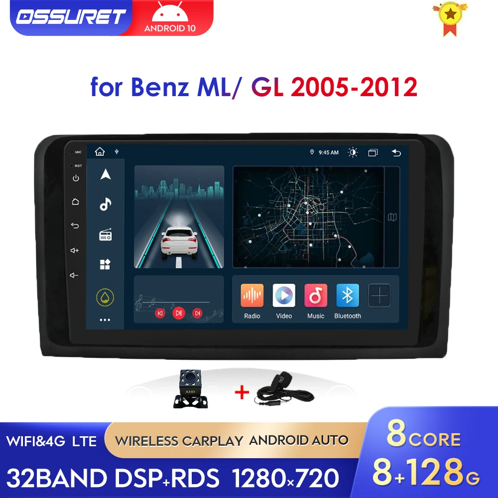 Автомобильное радио OSSURET Android10 для Mercedes-Benz ML-Class W164 GL-Class X164 GL320 ML280 2005-2012 мультимедийный плеер стерео GPS SWC