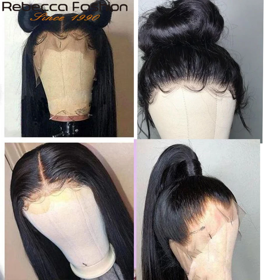 Rebecca HD прозрачные 13x 4 парики из натуральных волос на кружеве, предварительно выщипанные бразильские прямые парики на шнурках 4x4 Hd 360Парик на застежке