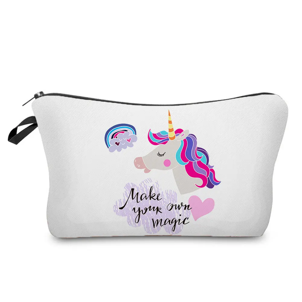 Милый органайзер для косметики с принтом единорога, модная женская сумка для макияжа, портативные сумки для хранения для детей, маленькие пеналы