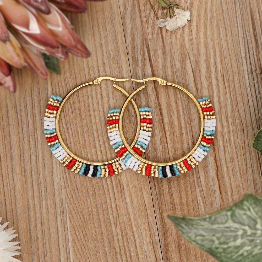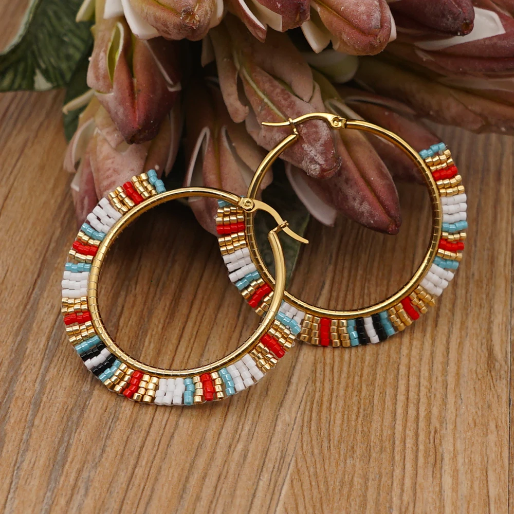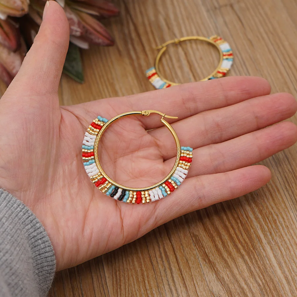 Go2Boho массивные серьги Miyuki серьги в виде колец, с геометрическ...