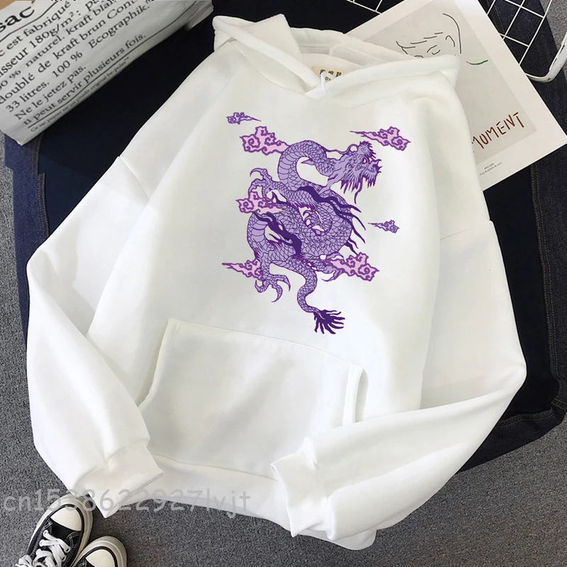 Женская толстовка с капюшоном и принтом дракона, в стиле Харадзюку
