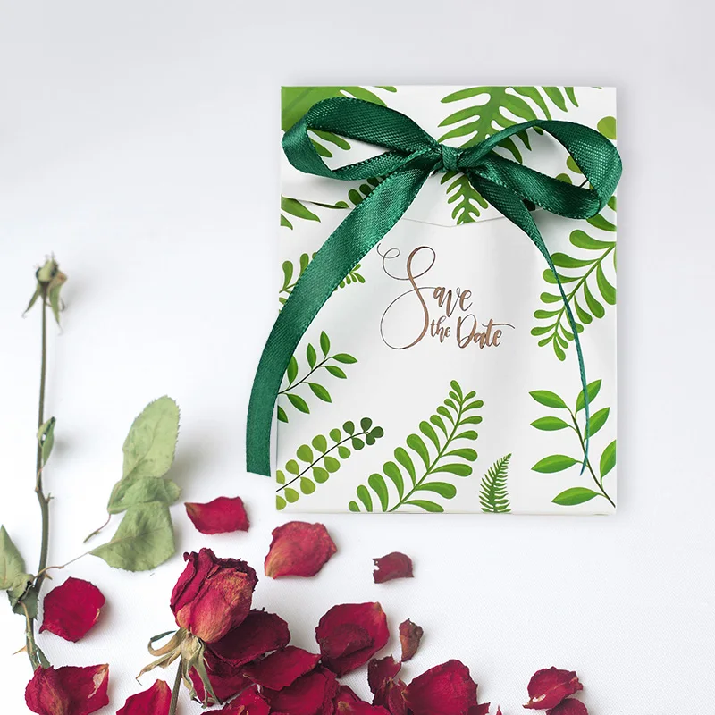 Коробка для конфет с зелеными листьями, свадебные сувениры, подароч...