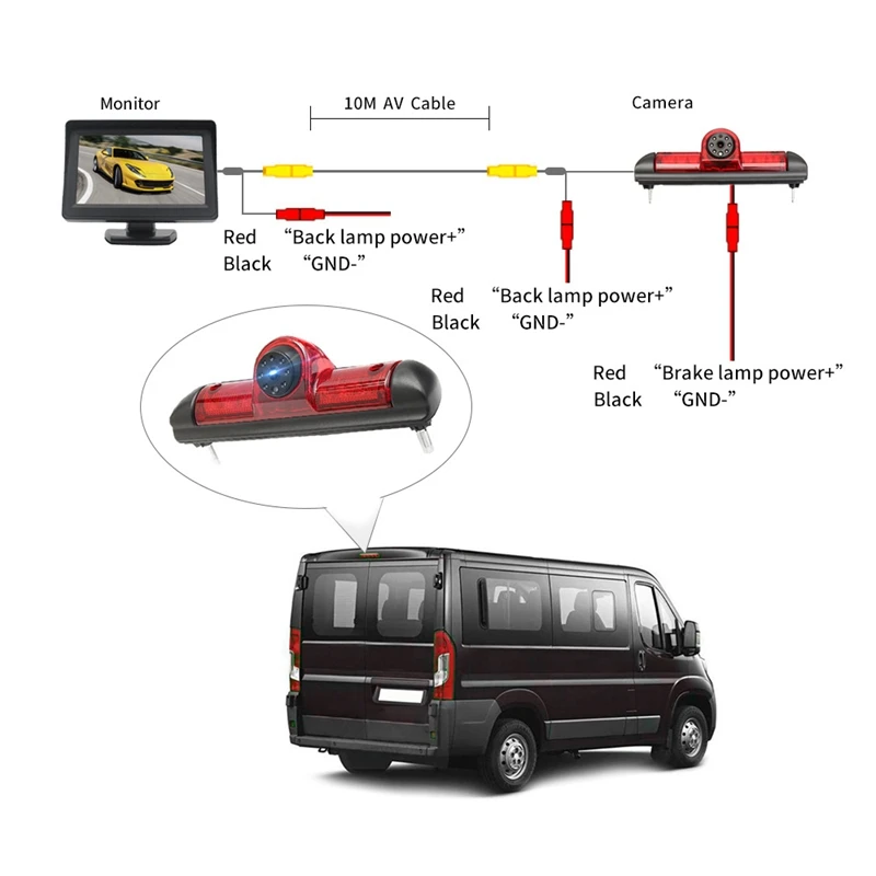 Стоп-сигнал с камерой заднего вида, поворот на 170 градусов и монитор 4,3 дюйма для FIAT Ducato, CITROEN Jumper, PEUGEOT Boxer 2006-2015