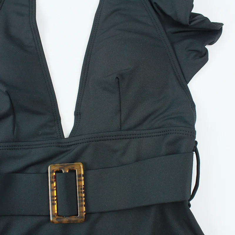 Женский слитный купальник с оборками, белый купальник с поясом и глубоким V-образным вырезом, модель 2021 года