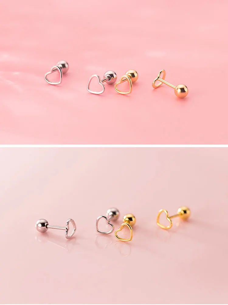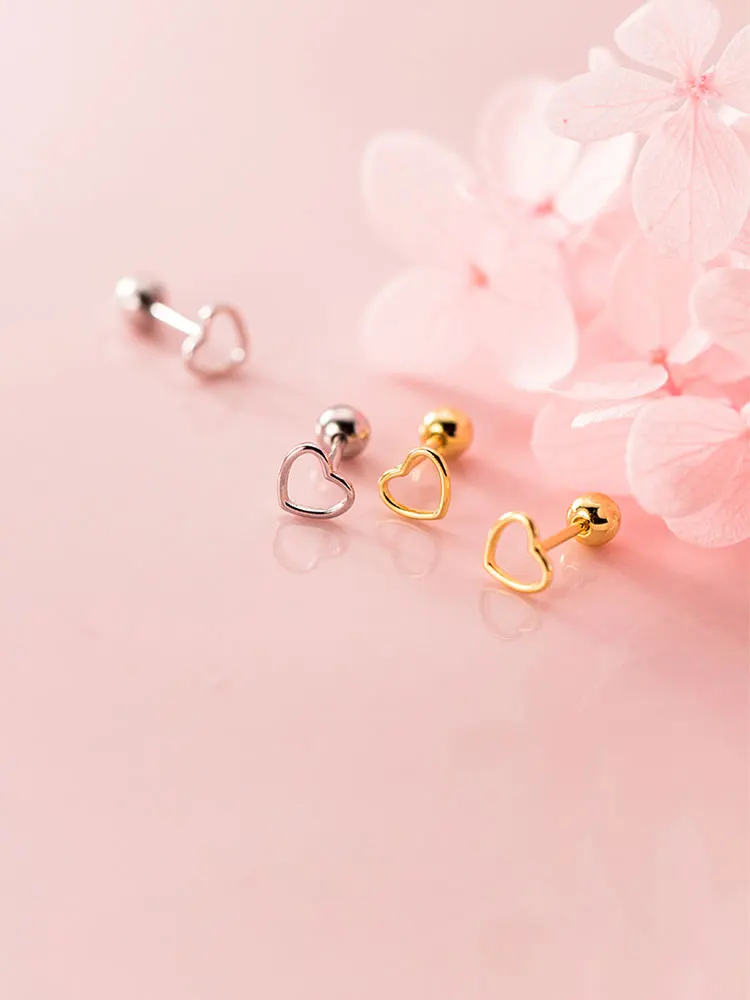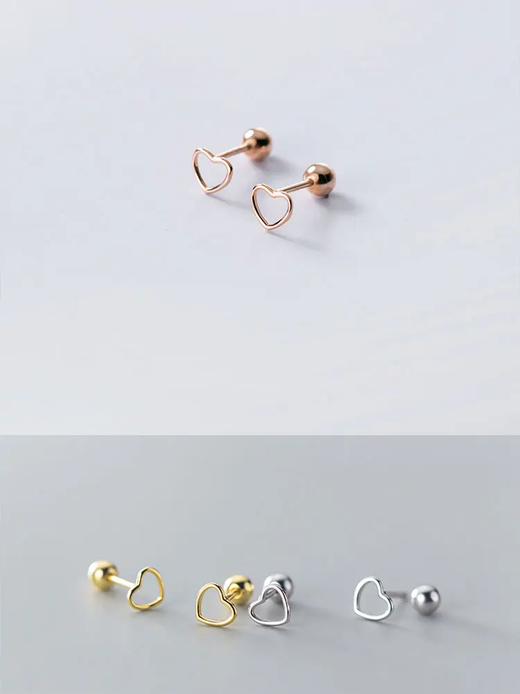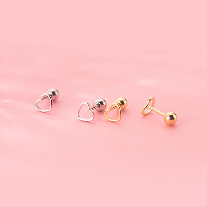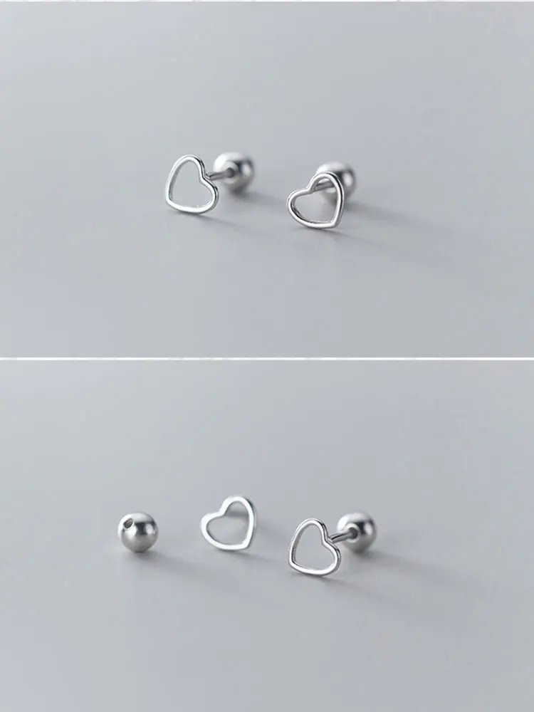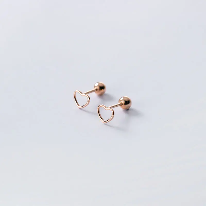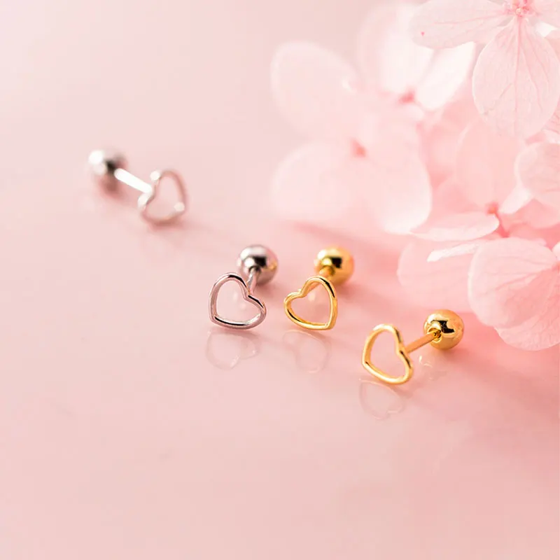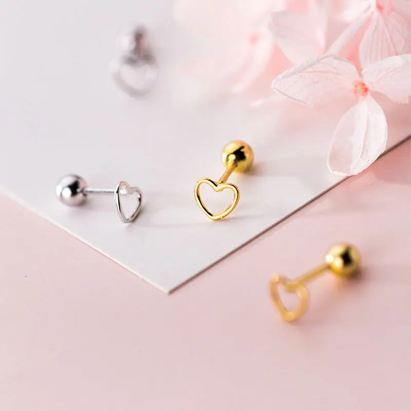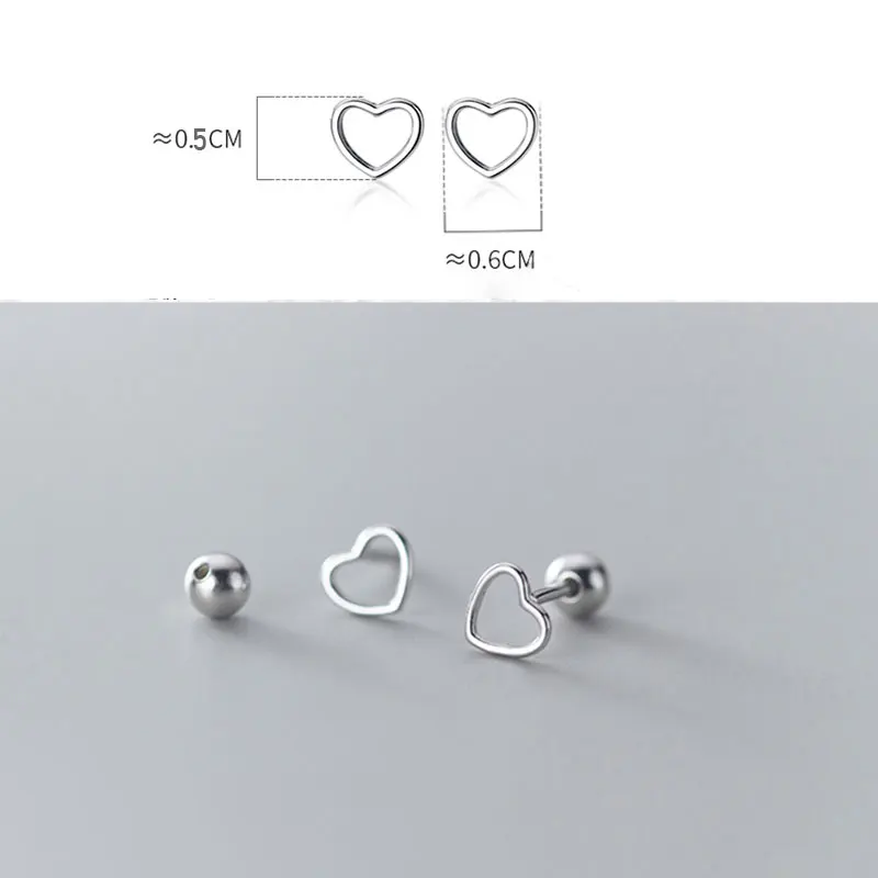 AIFENAO реальные 925 пробы Серебряное пустое сердце серьги для женщин Мода Винт-пуссеты в минималистском стиле ювелирные украшения для девочек, подарки для детей