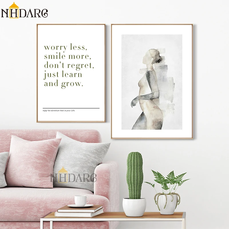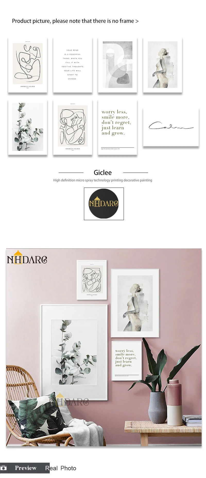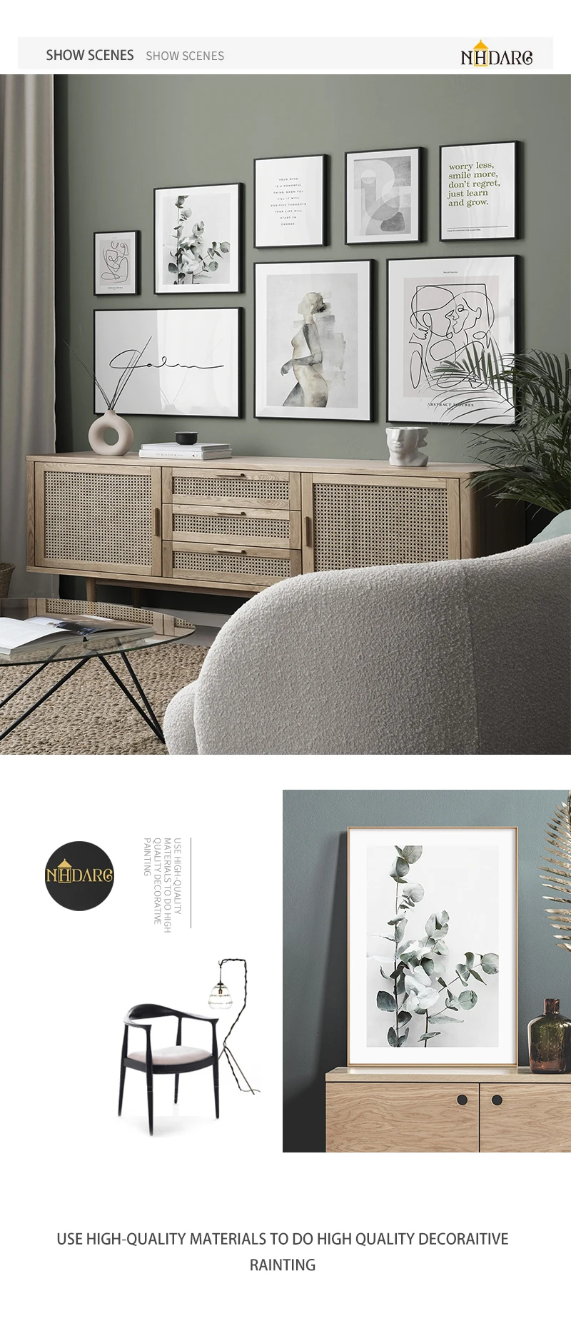 Абстрактные линии персонажа цитаты холст печать живопись плакат Настенные картины Искусство зеленые натуральные листья домашний декор для гостиной