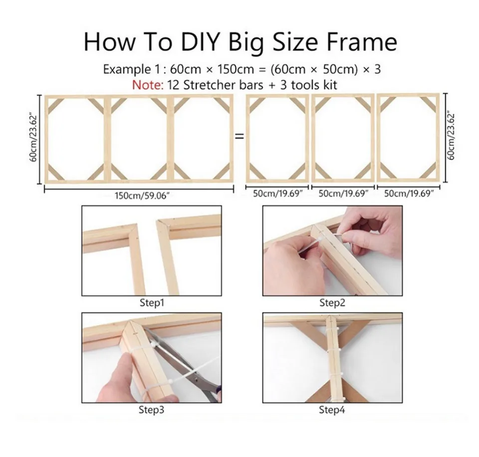 (Пожалуйста, убедитесь, что ваша картина имеет дополнительный край 3 см, я имею в виду, что размер холста должен быть как минимум больше, чем размер деревянного каркаса 6 см)