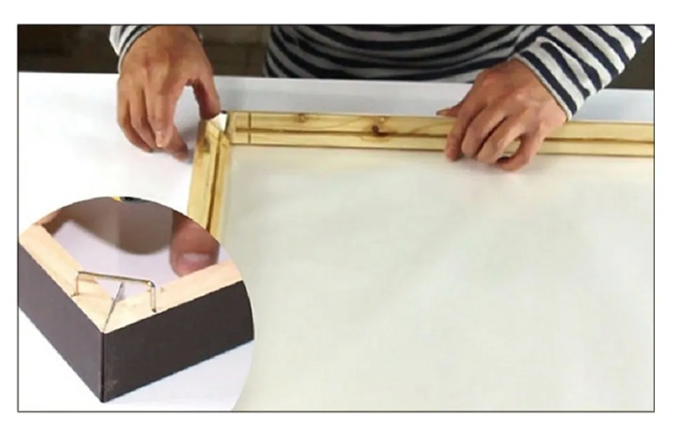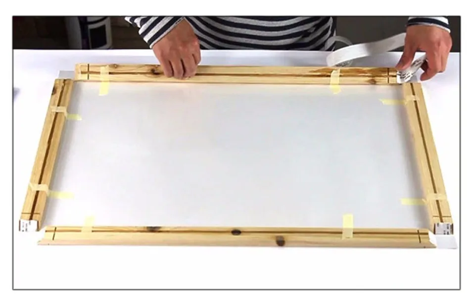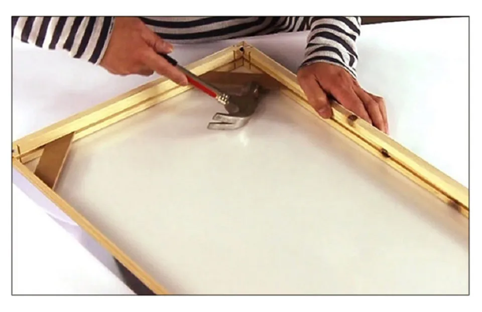 Переверните краску и используйте ручку, чтобы отметить положение дерева на краске. Пожалуйста, убедитесь, что угол облицовки дерева, а затем узкая сторона паза, обращенная внутрь. Убедитесь, что край дерева и край картины совпадают друг с другом, это очень важно.