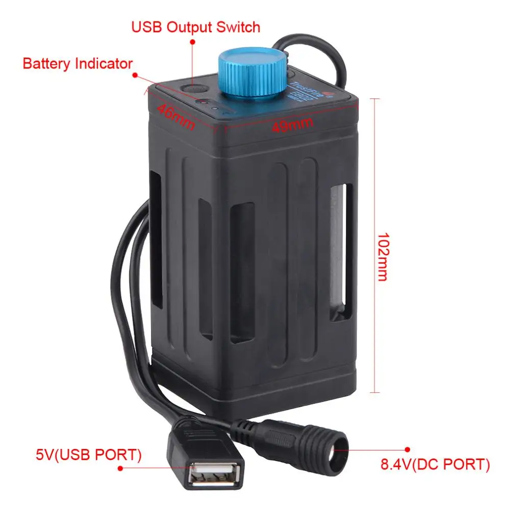 Есть ли упаковка: ДаОсобенности:-Может быть упакован в 4 аккумулятора 18650 и соединен с велосипедными огнями.-Двойной выход порта, круговой порт с водонепроницаемым интерфейсом резьбы, общий источник питания и зарядка, выходной ток USB интерфейса.-Уровень 3 инструкции по питанию, профессиональный водонепроницаемый.-Более 70% мощности зеленый светильник, электричество в 30%-70% Яркий желтый светильник, 30% ниже красный светильник.-Со специальными ремешками, легко носить с собой.Модель: чехол для аккумулятораМатериал: ABSЦвет: черный/красный/синий/зеленыйКоличество: 1 шт.Напряжение: 8,4 VТип источника: светодиодный светильникИсточник питания: 4 батарейки 18650 (не входят в комплект)Место применения: велосипедный светодиодный светильникВес изделия: 164 г/5,78 унцийРазмеры изделия (Д * Ш * В): 104*45*41 мм/4,09*1,77*1,61 дюймовВес посылка: 164,0 г/5,78 унцийРазмеры посылка (Д * Ш * В): 110*50*45 мм/4,33*1,97*1,77 дюймовРозничная упаковка: Да, цветная коробка