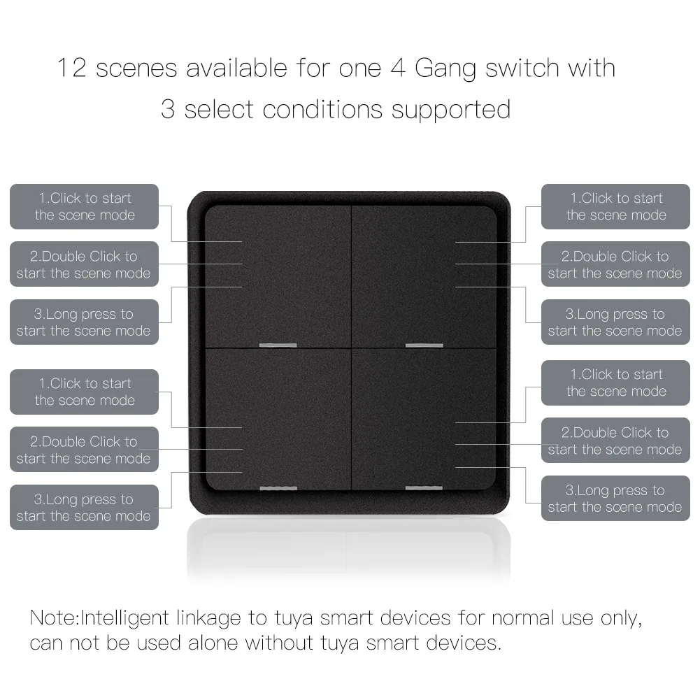 4 банды Tuya ZigBee Беспроводной 12 сцен переключатель механическая кнопка для нажатия контроллер на батарейках умный дом автоматизация переключатель сценария для смарт-устройств Tuya Изготовитель: Moes