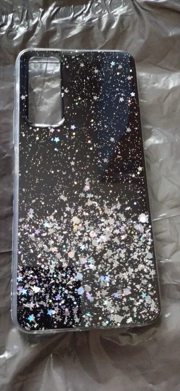 На удивление пришло быстро Спустя недели 2 до Киева Выглядит насыщеннее(чёрный тёмный, блёсточки блестят... вау), чем я ожидала и это лайк Правда кое-кто тупанул и думал, что блёстки в водичке :")))) но так даже безопаснее, мало треснет А так, чехол как чехол чо бубнить-то Нормас