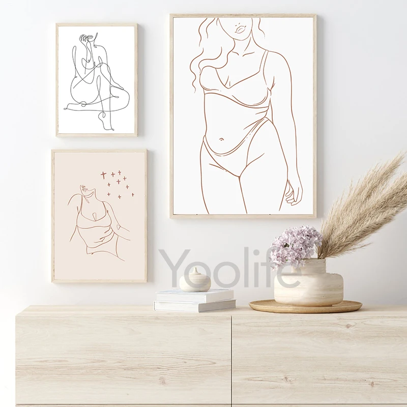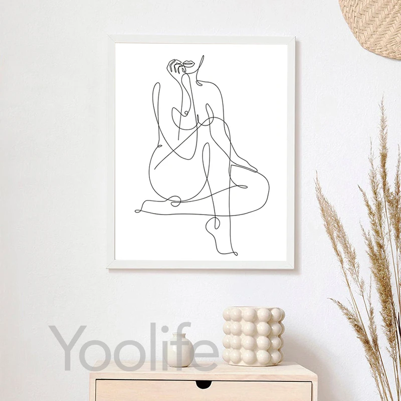 Изогнутая женщина художественный принт голая Женская фигурка боди линия рисунок на холсте минималистичный плакат Настенные картины спальня домашний декор