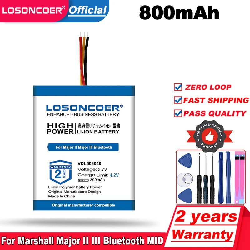 800 мАч VDL603040 батарея для Marshall Major II, Major II Bluetooth, Major III, Major III Bluetooth, MID беспроводная гарнитура батарея