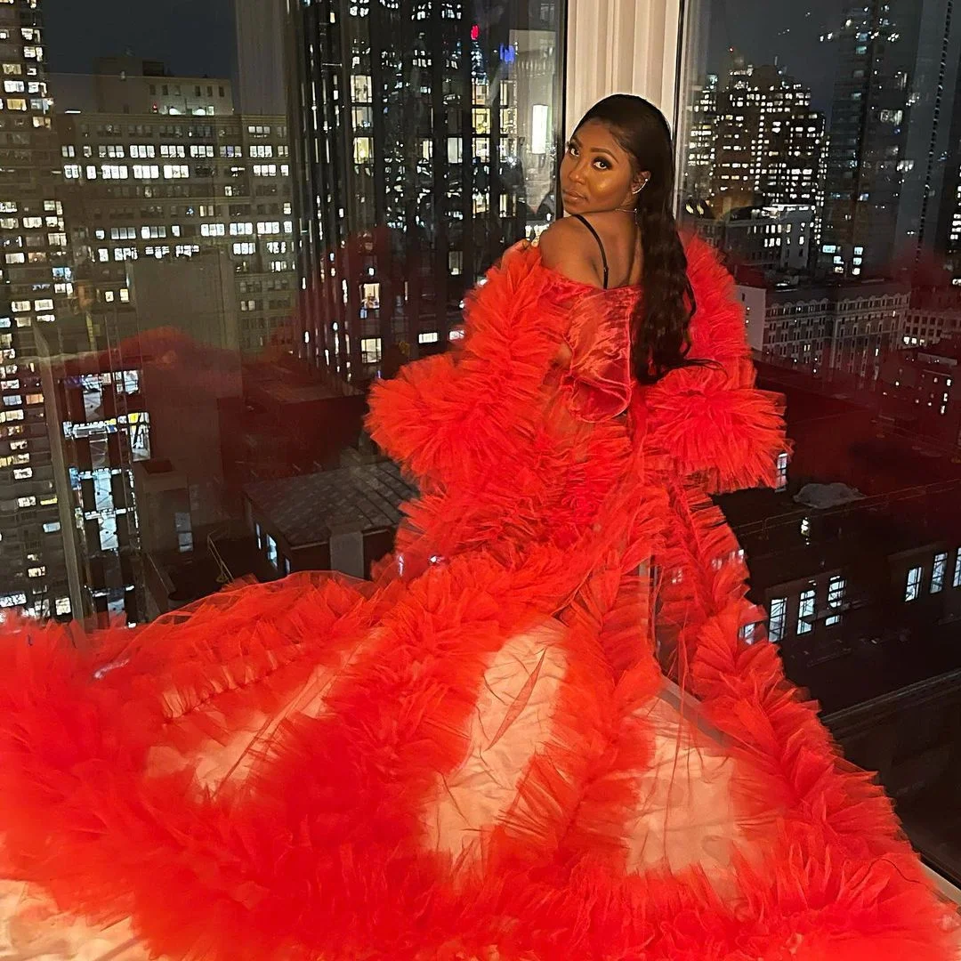 Красный с оборками с длинными рукавами беременности и родам фотосессия платья 2021 фото наряды для фотосессии для чернокожих женщин Тюль халат Изготовленный На Заказ