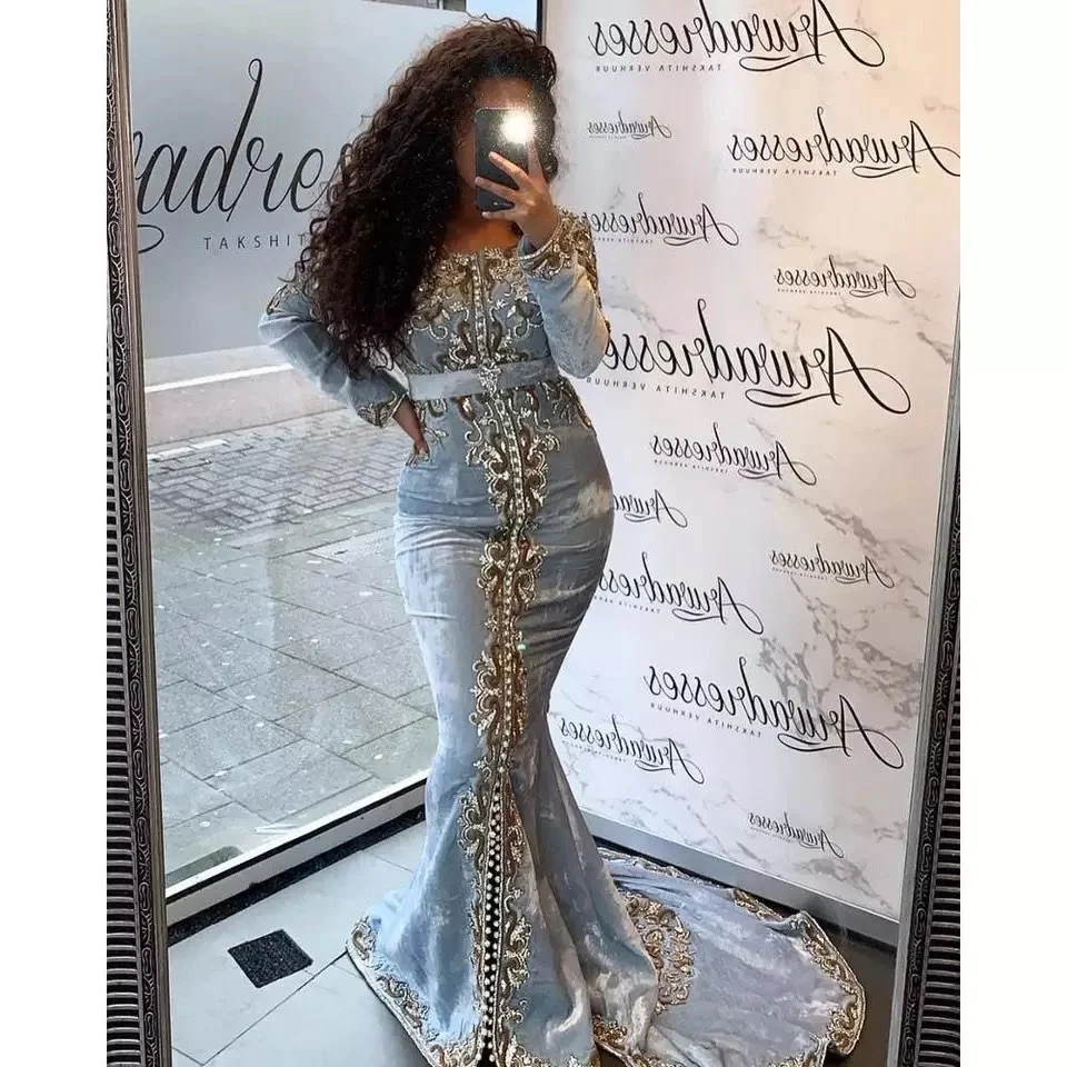 Зеленый бархат Karakou алжирский наряды вечерние платья убирающимся...