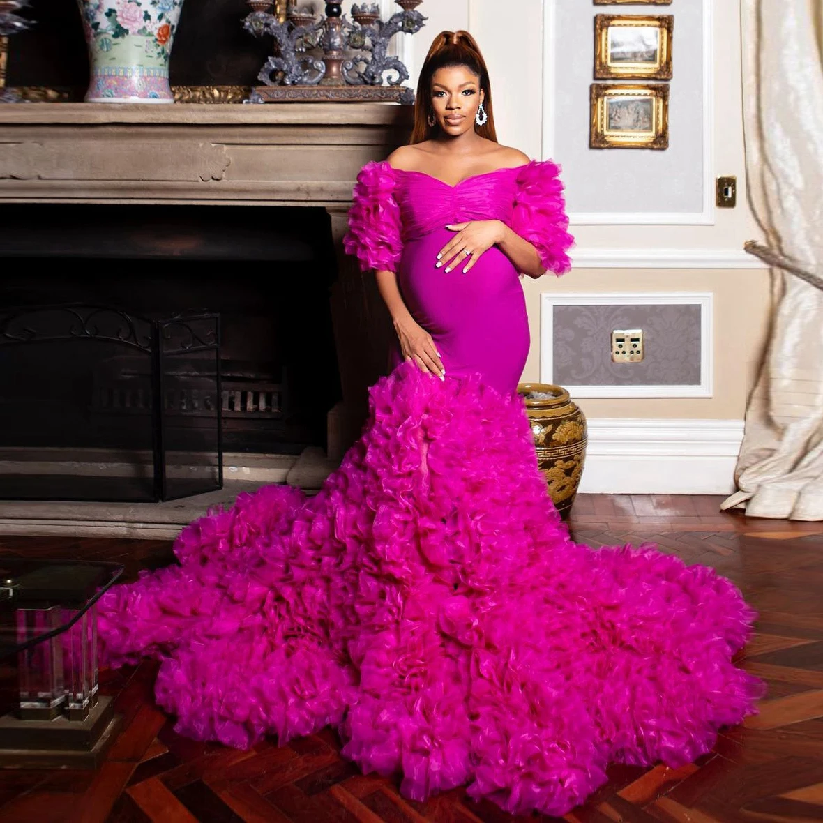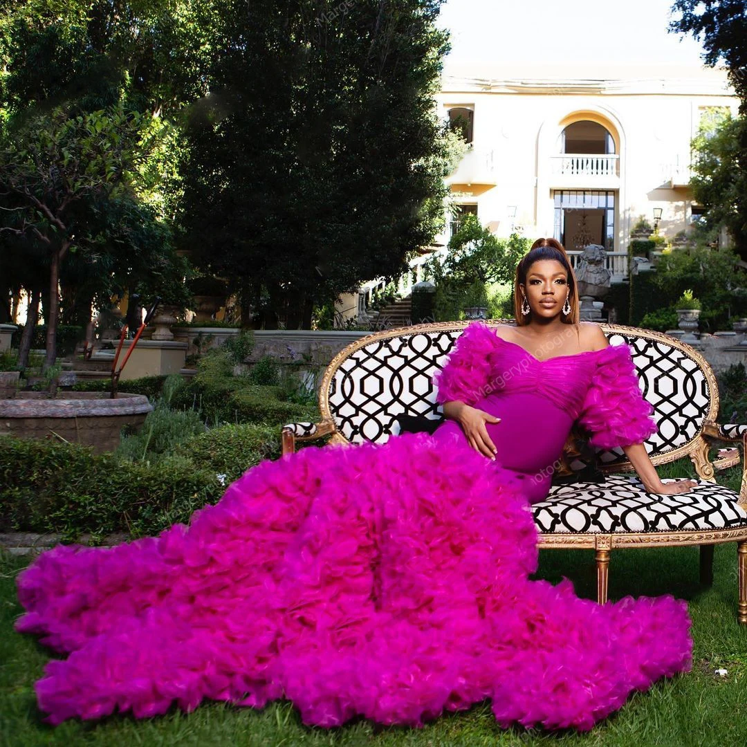ПУШИСТЫЕ платья с открытыми плечами фуксия для фотосъемки Пышное Тюлевое платье для будущей мамы беременных женщин индивидуальный пошив Халат