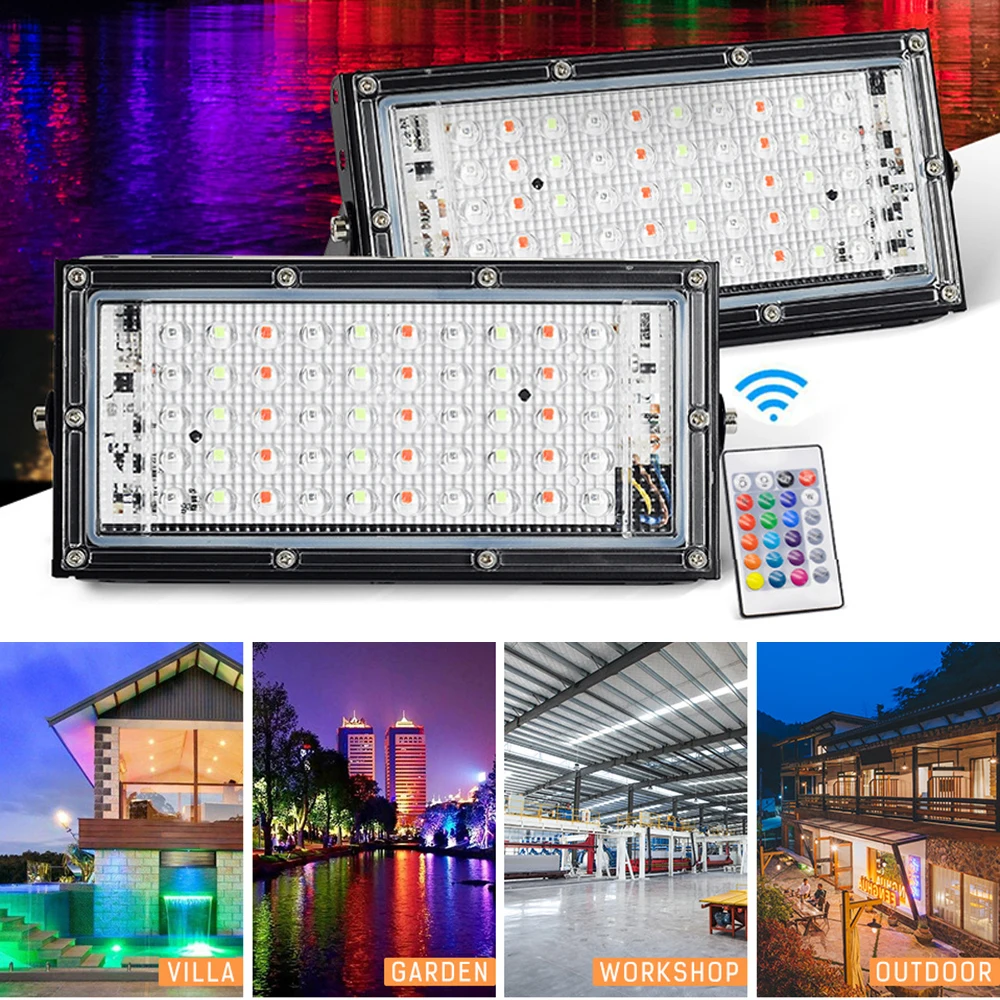 50 Вт RGB Светодиодный точечный светильник AC 220V 240V IP66 Водонепроницаемый напольный светильник белыйтеплый белый отражатель светодиодный прожектор светильник