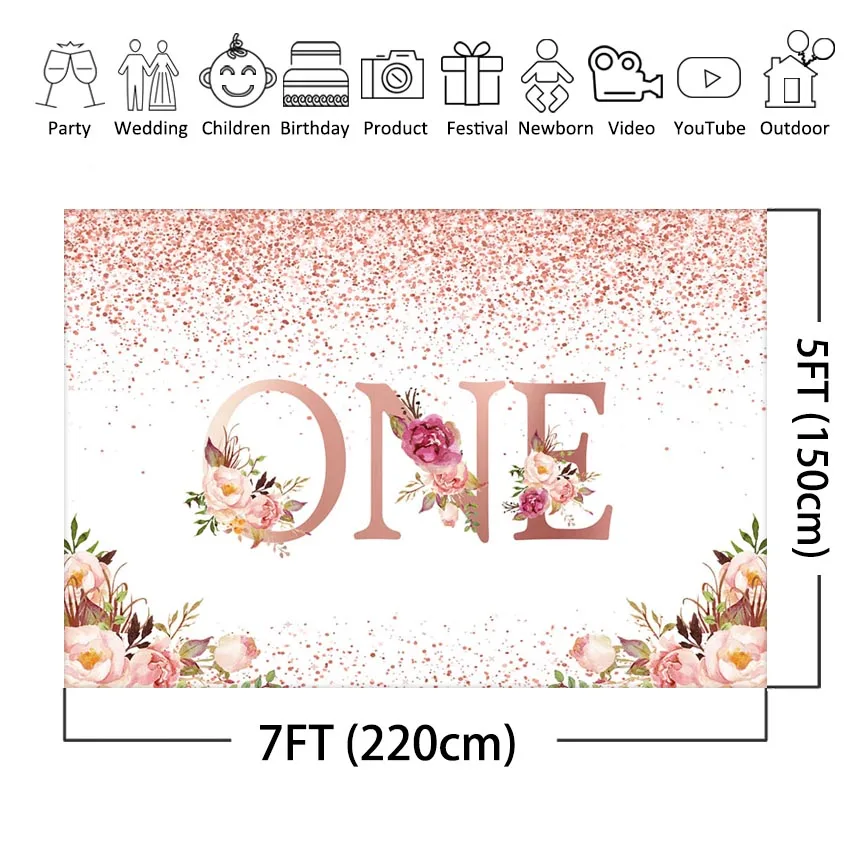 Mocsicka фон для фотосъемки с изображением цветов на первый день рождения, розовое золото, украшение на день рождения