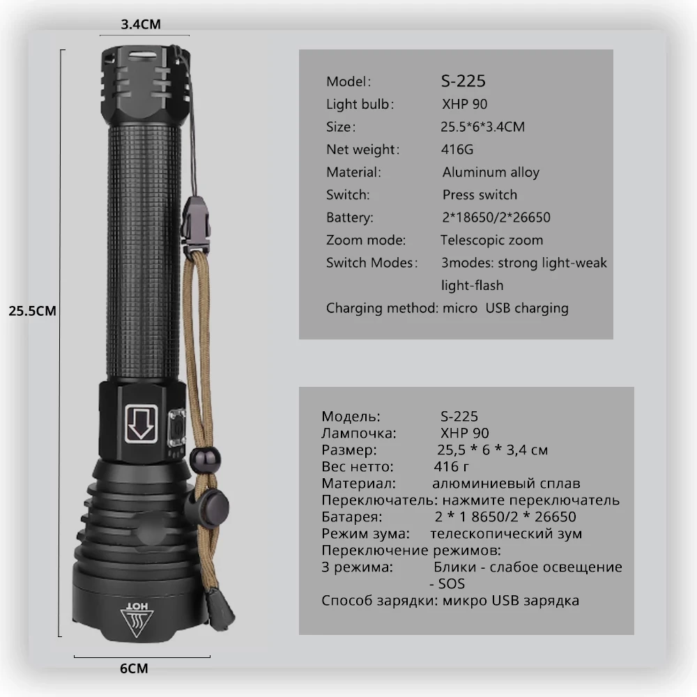 Самый мощный светодиодный фонарик с подзарядкой от usb, заряжаемый фонарь 26650 или 18650xhp70, xhp50 для охоты, люмен