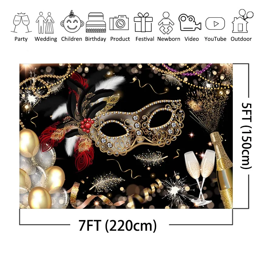 Mocsicka фон для маскарада вечевечерние Золотая и черная маска шампанское карнавал Марди Гра день рождения фоновые украшения