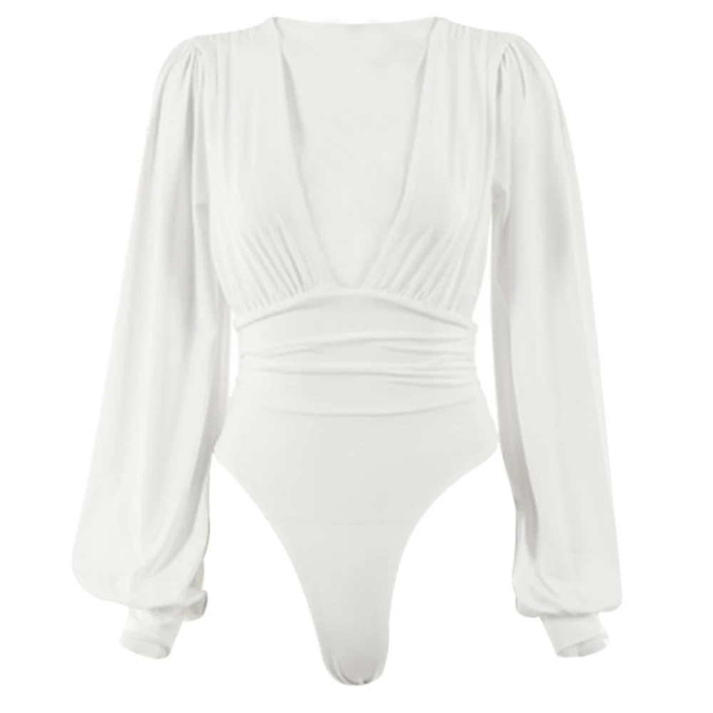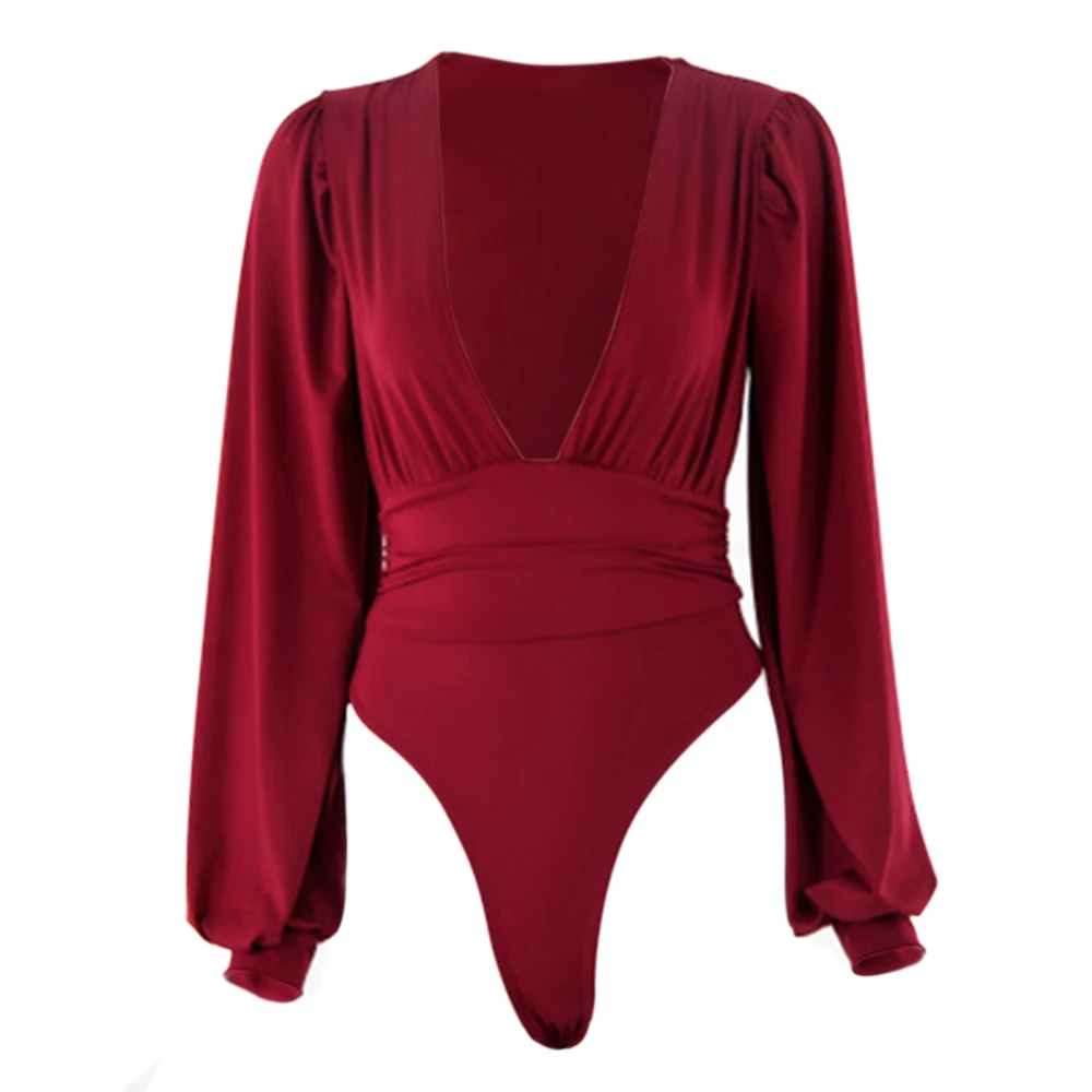 Боди женское с глубоким V-образным вырезом, пикантный Облегающий комбинезон с буффами на рукавах, однотонное эластичное повседневвечерние вечернее боди, модные топы, весна