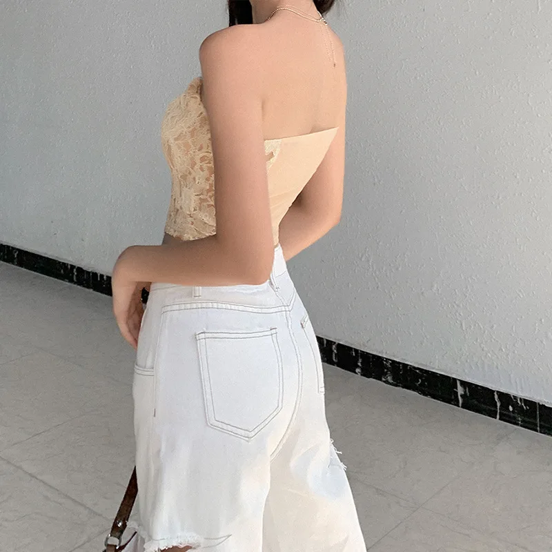Женский топ без бретелек Yimunancy, кружевная вышивка с цветочным р...