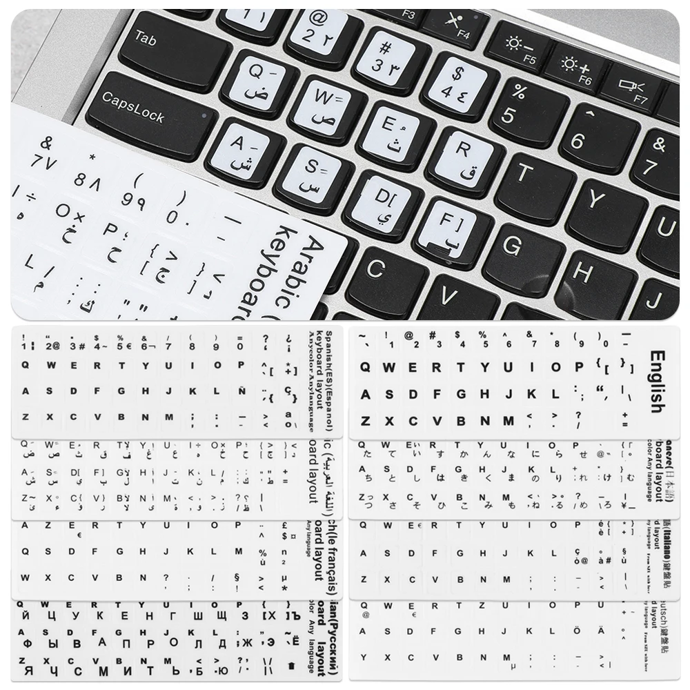 1 шт. Сменные наклейки для клавиатуры износостойкие наклейки для раскладки алфавита Испанскийанглийскийрусскийнемецкийарабскийитальянскийяпонский