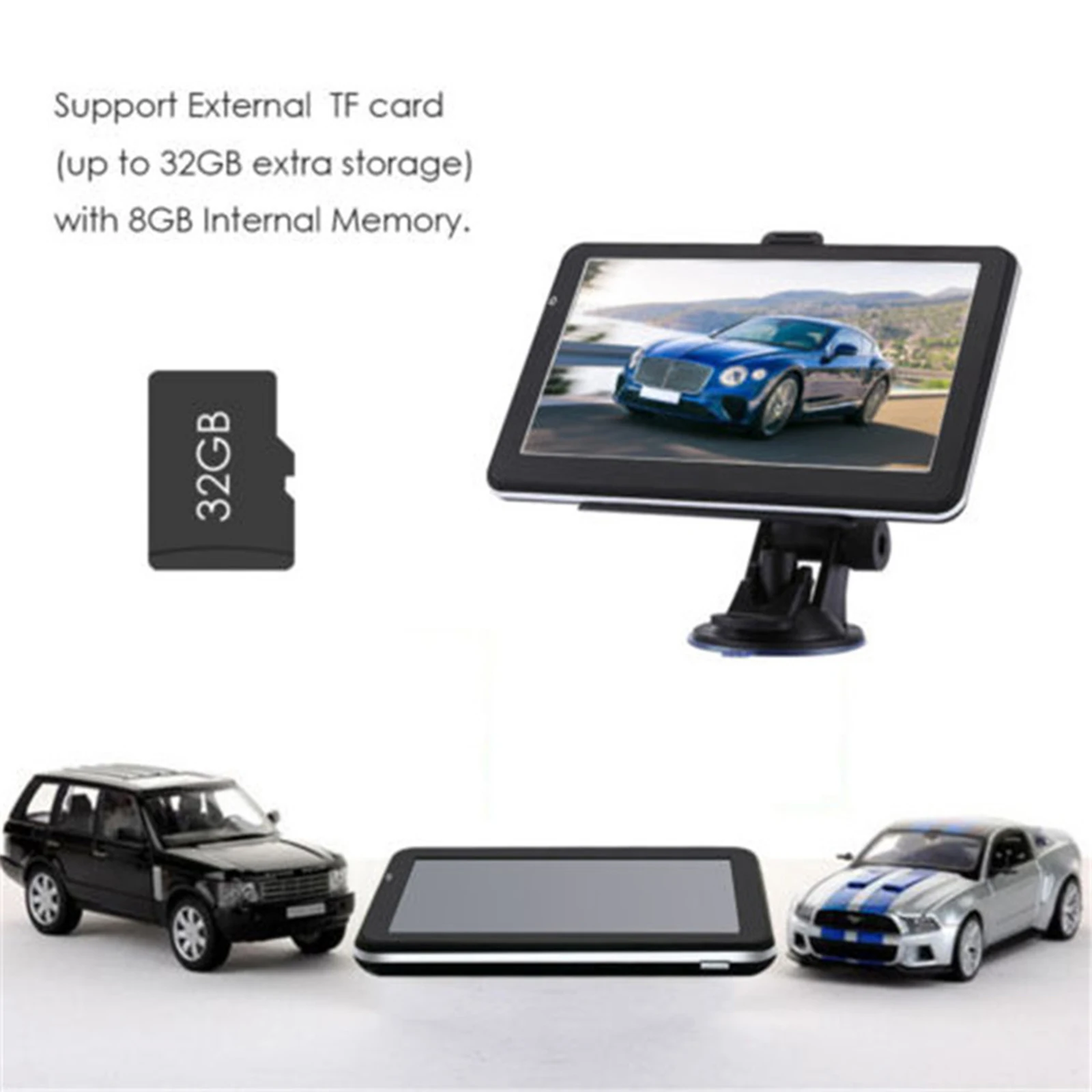 Быстрый и чувствительный отклик, стилус не нужен, просто нормальное прикосновение. Поддержка максимальной емкости флеш-памяти Nand (256 МБ), встроенный 8G. Поддержка внешней карты памяти TF до 32 г (не входит в комплект). Поддерживает файлы и браузеры изображений. Поддержка воспроизведения аудио и видео (для MP3 / MP4). Встроенный литий-ионный аккумулятор емкостью 1200 мАч, заряжается через порт micro USB 5 В. Портативный дизайн, светильник вес, легко носить с собой и использовать. Подходит для следующих стран и регионов (Европа): Albania, Ireland, Estonia, Andorra, Austria, Belarus, Bulgaria, Belgium, bogaria, bobia, Poland, Denmark, Германия, Россия, Франция, Ватикан, Финляндия, Нидерланды, Montenegro, чешский Косовский, хорватский, Латвийский, литовский, португальский, Люксембург, Румыния, Мальта, македонская, Молдавская, Monaco, Norway, Portugal, Sweden, Switzerland, Serbia, Cyprus, San Marino, Словакия, Словения, Турция, Украина, Испания, Греция, Венгрия, Италия, Великобритания, Gibraltar, Iceland Спецификация: Размер экрана: 7 дюймов Двойная навигационная система: 2D, 3D Разрешение: 800x480 RAM: SD RAM 256MB ROM: 8 Гб памяти ЦП: 800 МГц Операционная система: Windows CE Частота: 76,0 МГц-108 МГц Интерфейс: USB 2,0 Аккумулятор: встроенный литий-ионный аккумулятор емкостью 1200 мАч Время работы: 1,5 h Время зарядки: 2-3 ч Формат видео: ASF, AVI, MP4, WMV, MPG, DAT, MPEG, 3GP Формат аудио: WMA9, MP3, WAV Формат фото: JPG, GIF, BMP, PNG TF карта: Поддержка макс. до 32 г (карта не входит в комплект) Материал: электронный компонент + пластик + металл Цвет: черный Упаковочный листПосылка включает в себя: Gps-навигация-1 шт. Автомобильное зарядное устройство-1 шт. 1 х USB кабель 1 x кронштейн для присоски 1 x зажим 1 x Руководство пользователя