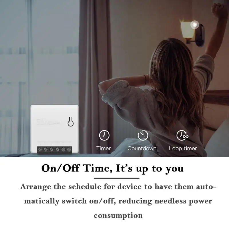 Это мини-и компактный смарт-переключатель DIY, используемый для различных видов коробок переключения, даже самый маленький Стандартный Переключатель ЕС. Удобно автоматизировать бытовую технику с помощью приложения eWeLink через ваш смартфон или планшет или голосовую команду. Поддержка подключения внешнего переключателя на перекидной светильник не может автоматически прикрепить назад для легкого управления подключенными устройствами в вашем доме, как на вашем телефоне, так и непосредственно со стены. Он поддерживает режим «сделай сам» (предназначен для разработчиков), который позволяет пользователям интегрировать мини в третьи по всему миру вечерние системы управления с открытым исходным кодом для достижения контроля локальной сети без облачного сервиса, например, домашний помощник, openHAB, ioBroker. И т. д.
