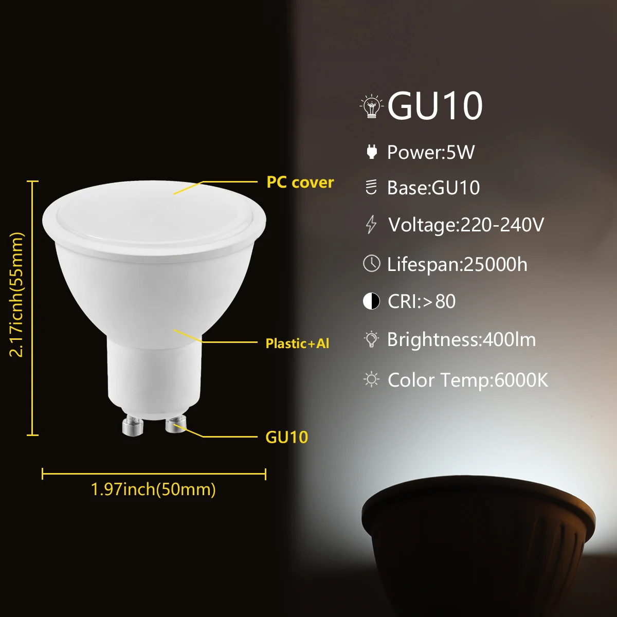 Суперъяркий, энергосберегающий, теплый, холодный белый свет Gu10, 5...