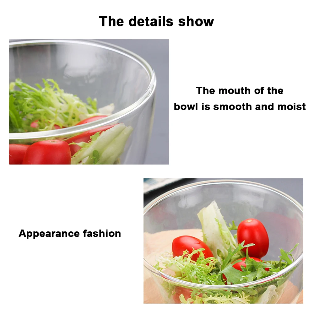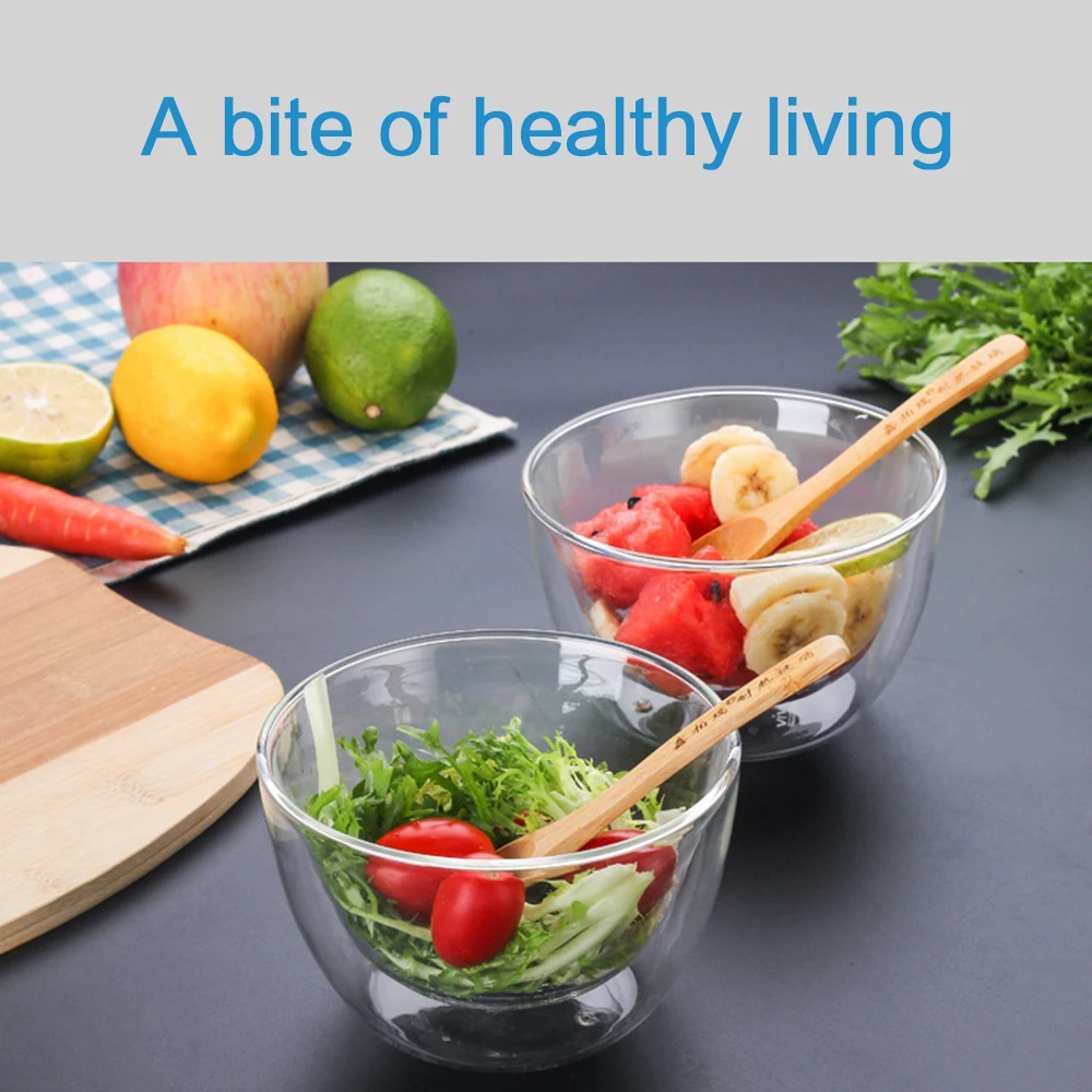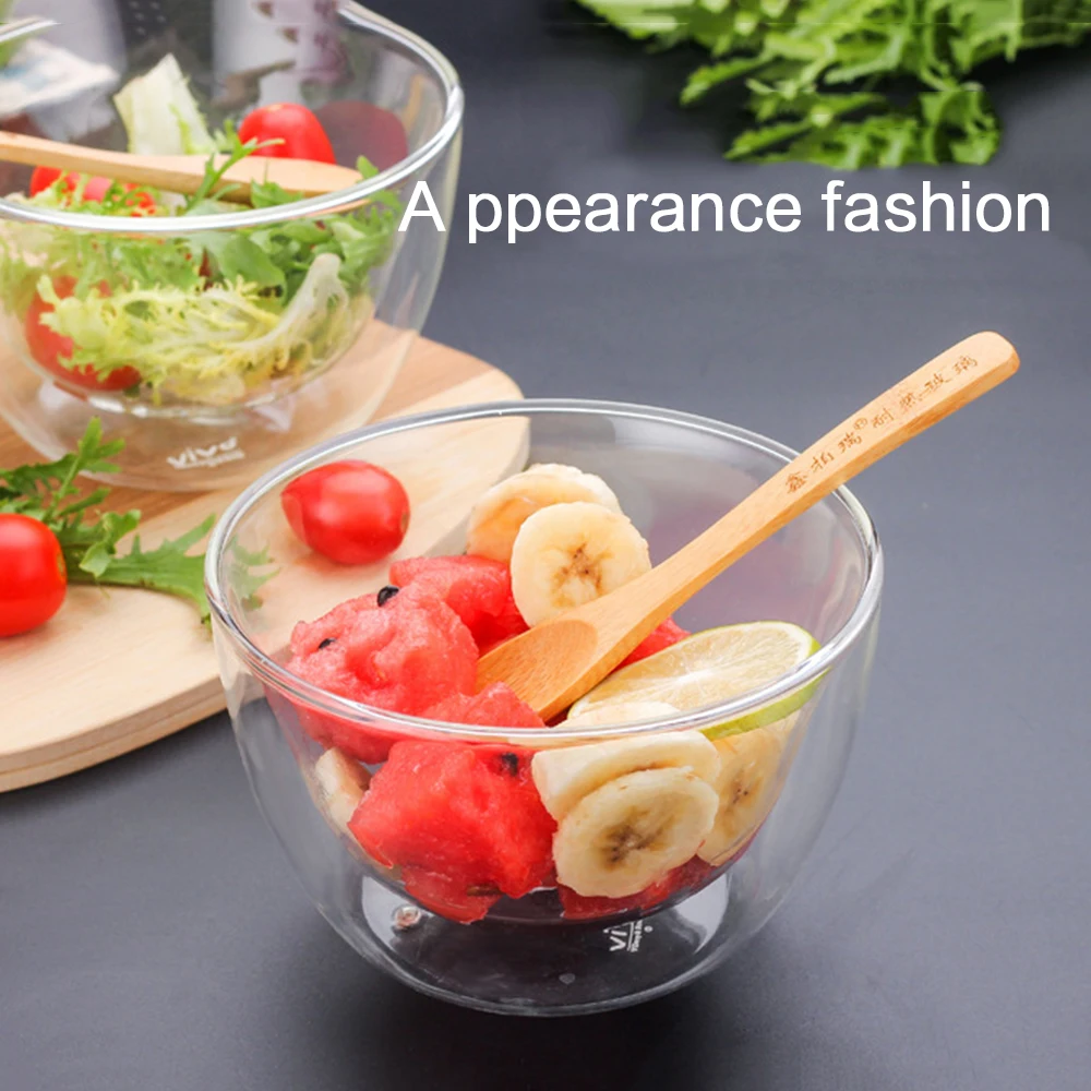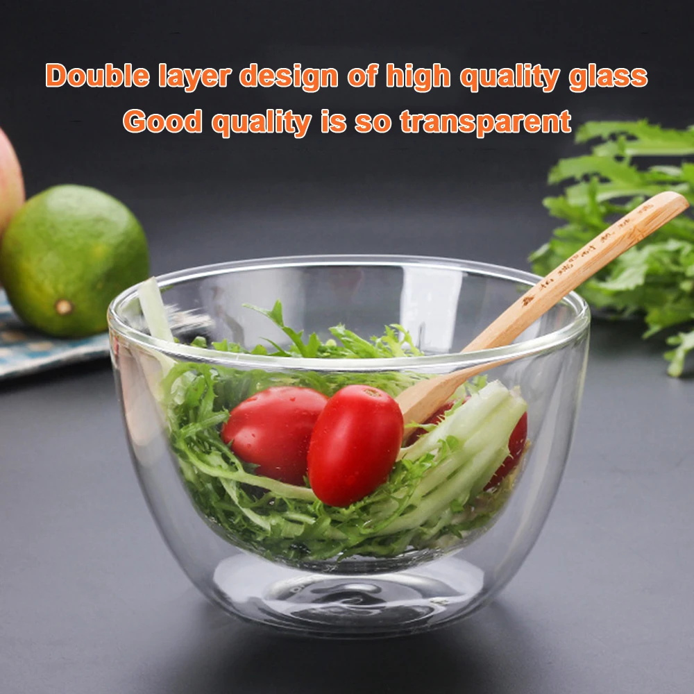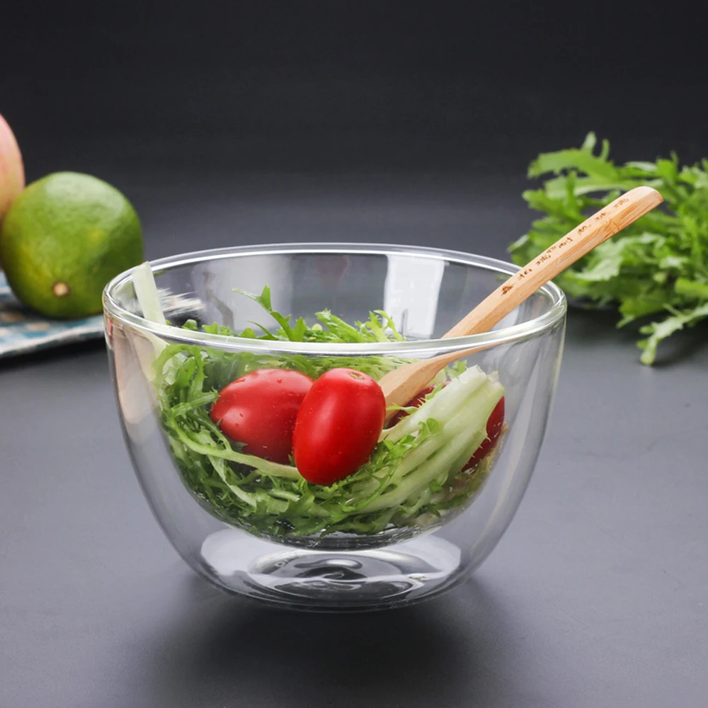 Двухслойная термостойкая посуда из боросиликатного стекла, посуда для салата, чаша для микроволновой печи, мороженого, термостойкая посуда для салата