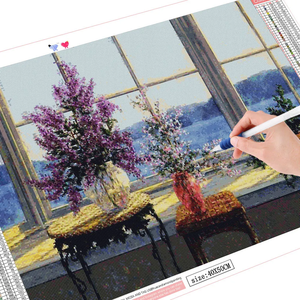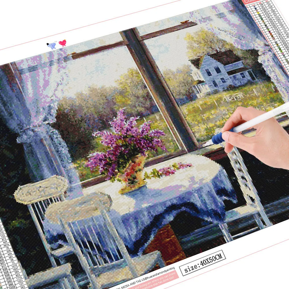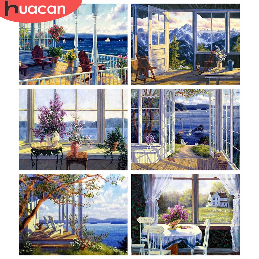 Алмазная живопись HUACAN, Новый Пейзаж в виде окна, 5D алмазная вышивка сделай сам, вышивка крестиком, мозаика для морских стразы, украшение для дома