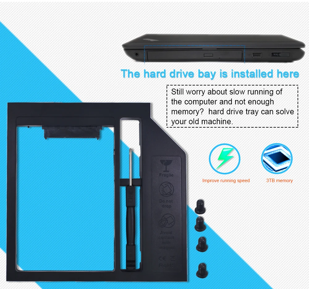 TISHRIC пластиковый SATA 3,0 2,5 "HDD Caddy жесткий диск адаптер коробка корпус 12,7 мм Оптический отсек Caddy SSD чехол для ноутбука DVD/CD-ROM