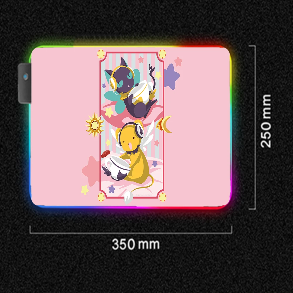 Коврик для мыши со светодиодной подсветкой для клавиатуры, с рисунком аниме, магической карты, девушки, сакуры, милой кошки, Rgb