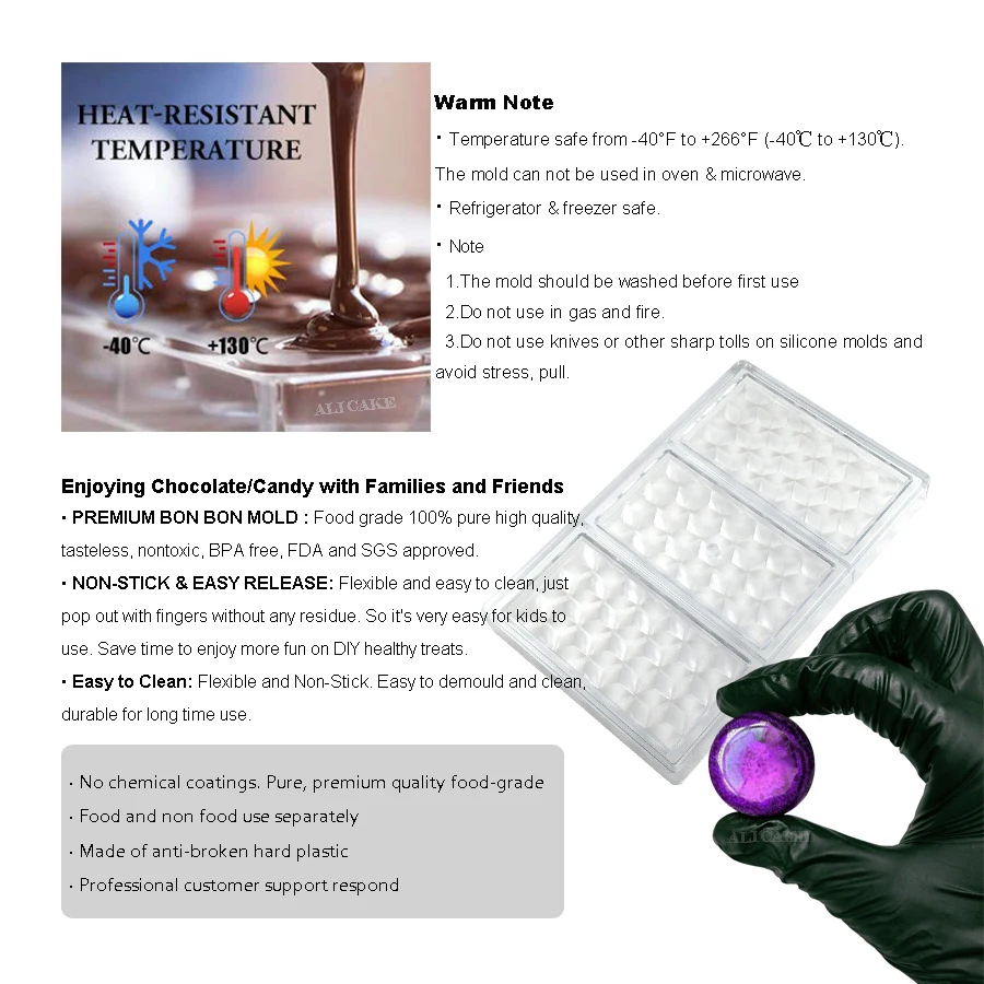 1. Используйте пищевые пластмассы, соответствующие FDA и SGS.2. Наши формы более тяжелые, толстые, прочные и долговечные!3. Отсутствие вредных веществ, обеспечение безопасности и здоровья!4. Мы осуществляем бесплатный возврат во многие страны!5. Наша поверхность формы гладкая и не подвержена царапинам.