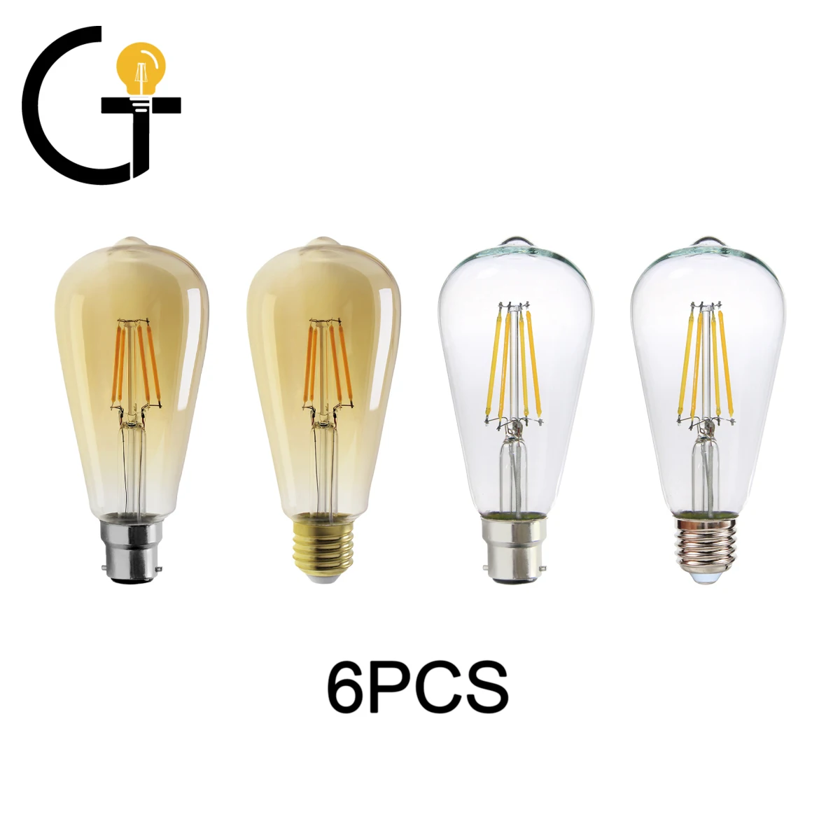 6 шт.лот St64 лампа накаливания 6 Вт B22 Ретро Эдисон 220-240 В вин...