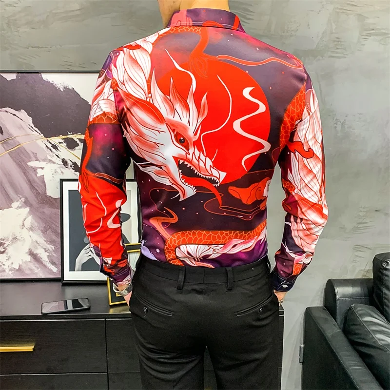Рубашка мужская с длинным рукавом и принтом, осень 2019