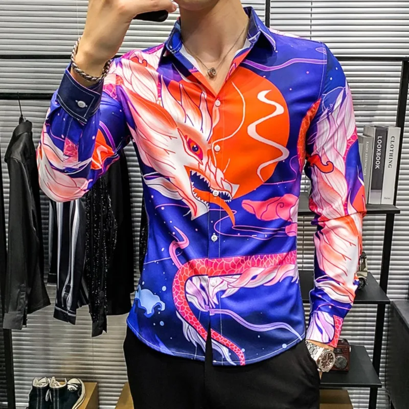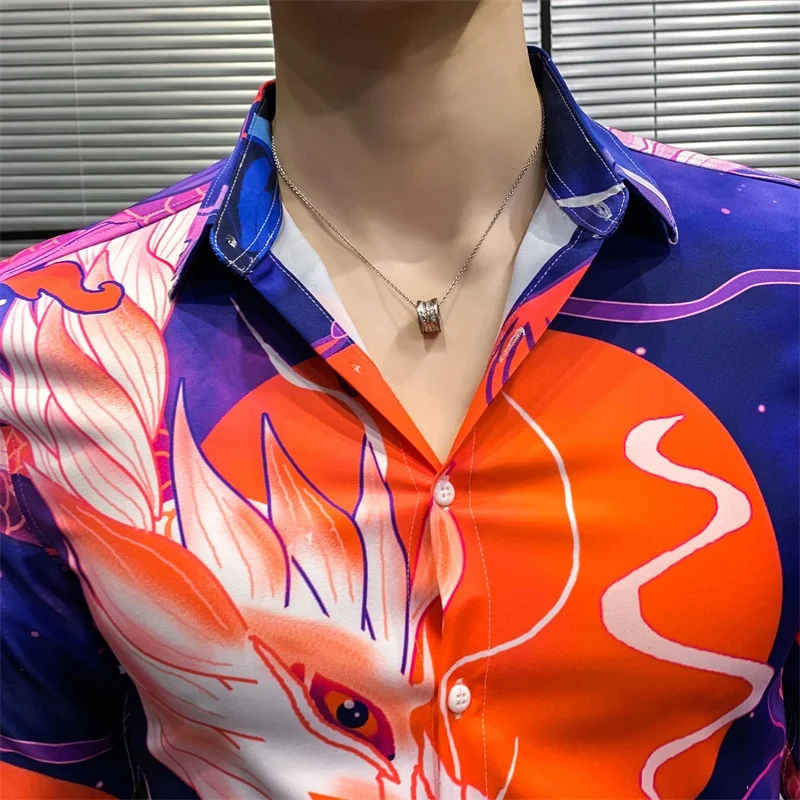 Мужская рубашка с цветочным принтом, цветная Мужская рубашка с прин...