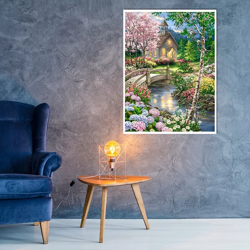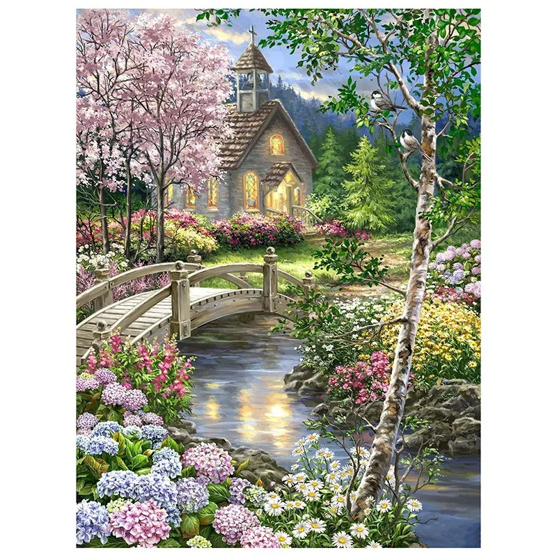 Алмазная 5D картина сделай сам, пейзаж, домик, полное сверло, кругл...