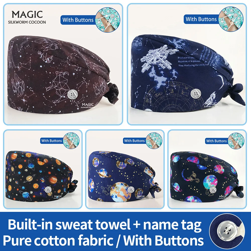 Медицинские Хирургические колпачки унисекс, регулируемые, с принтом, для стоматологии, для мужчин и женщин, головные уборы для медсестер