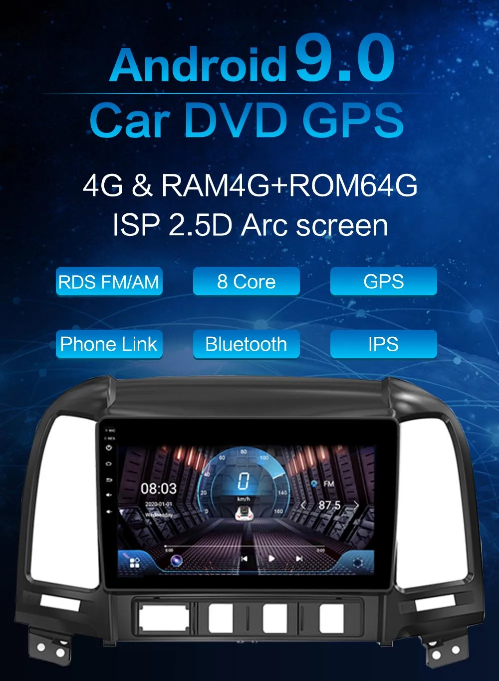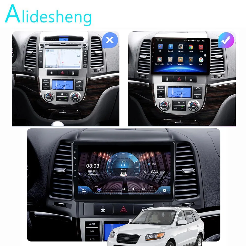 Android 10,0 автомобильное радио для Hyundai Santa Fe 2 2006 2007 2008 2009 2010 2011 2012 9 дюймов 1024*600 8 ядер wifi Bluetooth Видео Аудио мультимедиа 2 din автомобильный dvd плеер